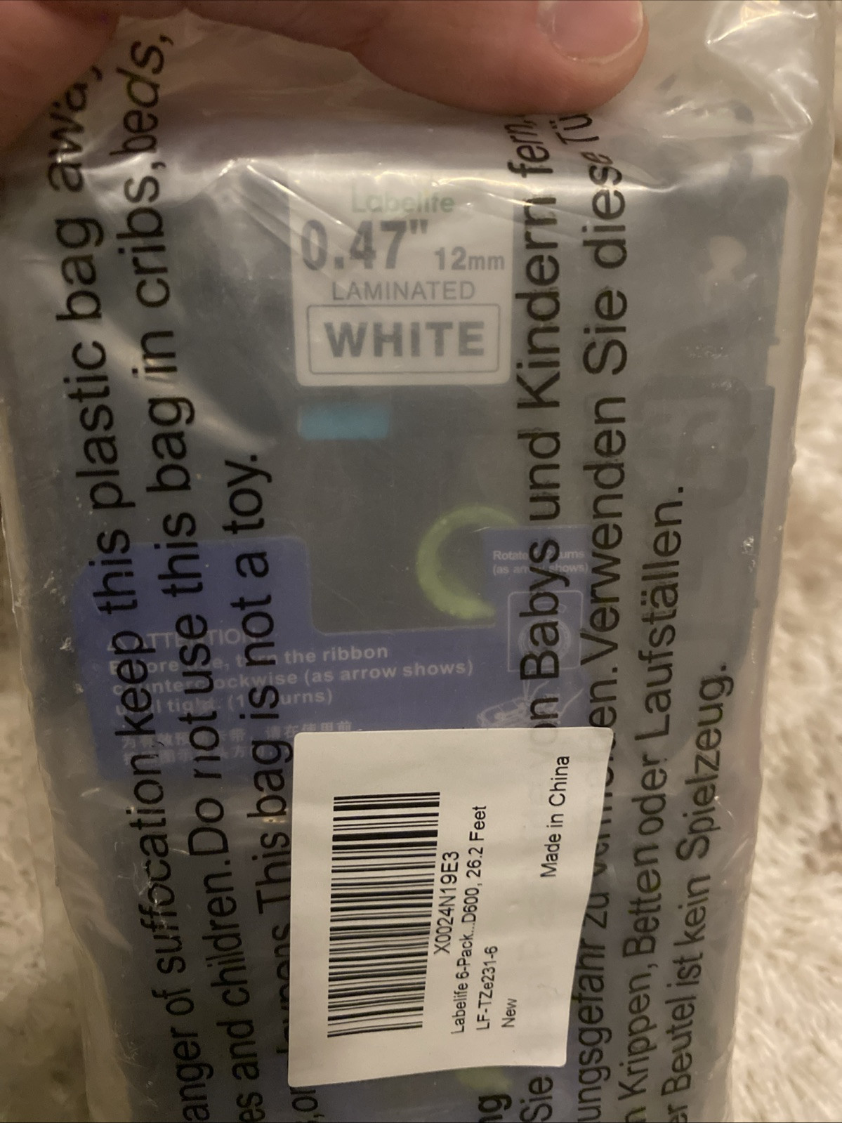 как выглядит 6 Pack Labelife White Laminated Label Tape 12mm x .47" for Brother P Touch D600 фото