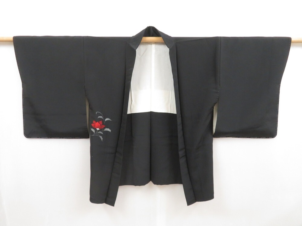 • 5105T11z600 Vintage Japanese Kimono Silk HAORI Flower Black