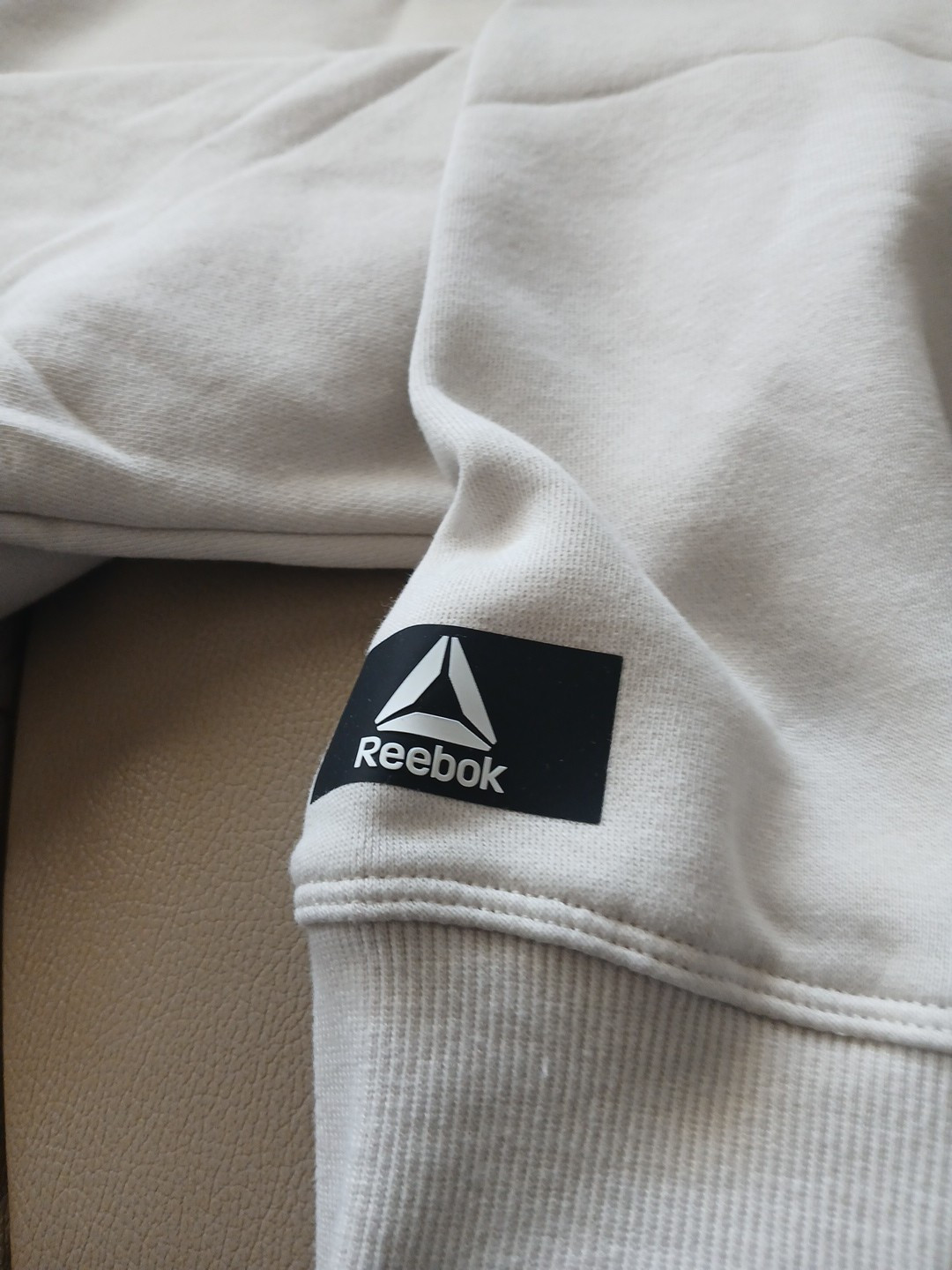 как выглядит Reebok Unisexs Long Sleeve Crew Neck Logo Sweatshirt Beige Size XL Pullover фото