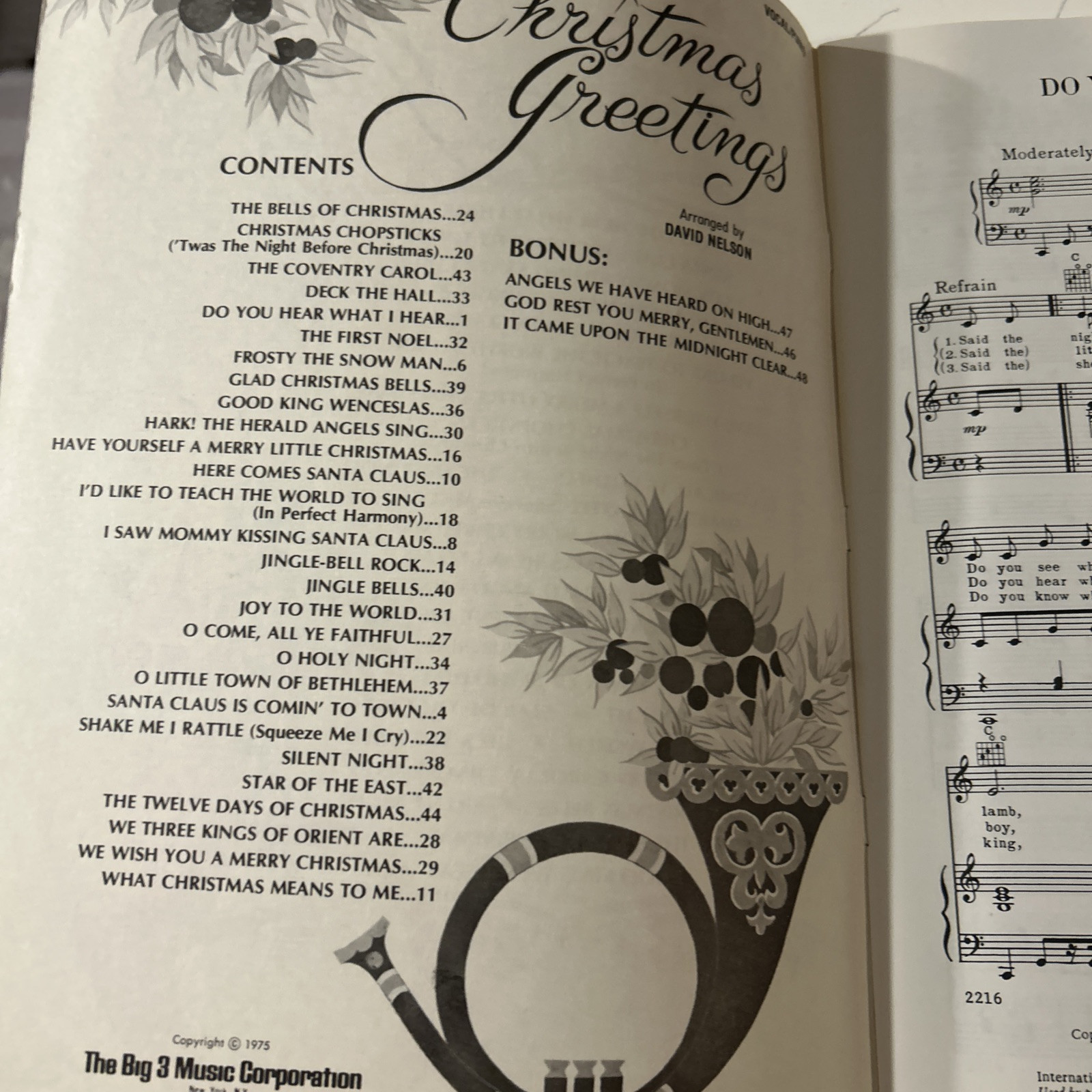 как выглядит Christmas Greetings David Nelson 1975 Vocal/Piano Big 3 Music Sheet Music фото