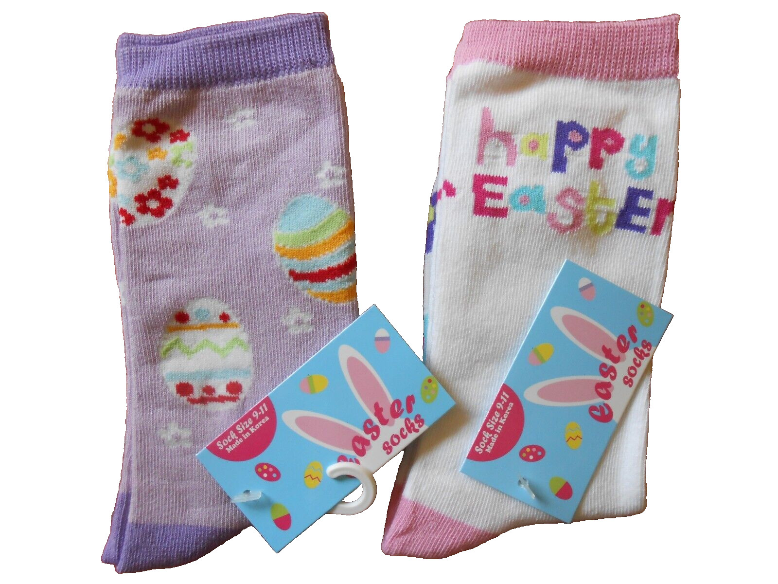 EASTER CHILDRENS SOCKS - SOCK SIZE 9-11 - TWO PAIR NWT - SET THREE