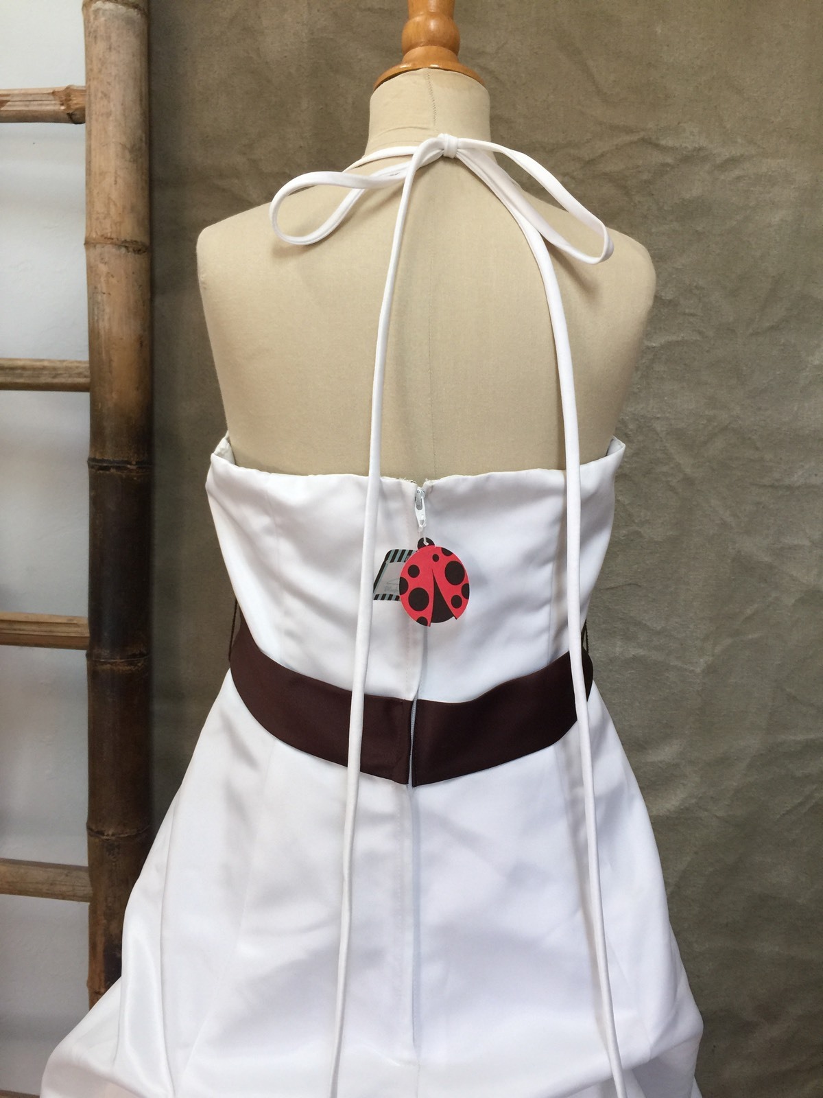 как выглядит Girls WHITE SATIN FORMAL HALTER GOWN Flower Girl Dress 10 Brown Sash Full Length фото