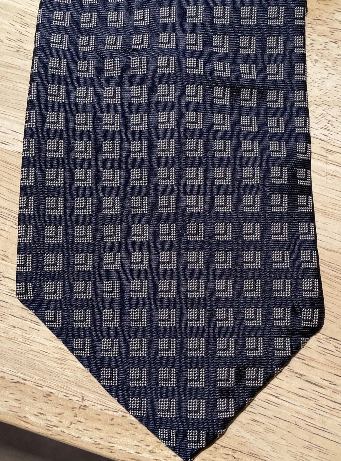 Lauren Ralph Lauren Navy Blue Geometric Design Neck Tie 100 Silk Handmade USA