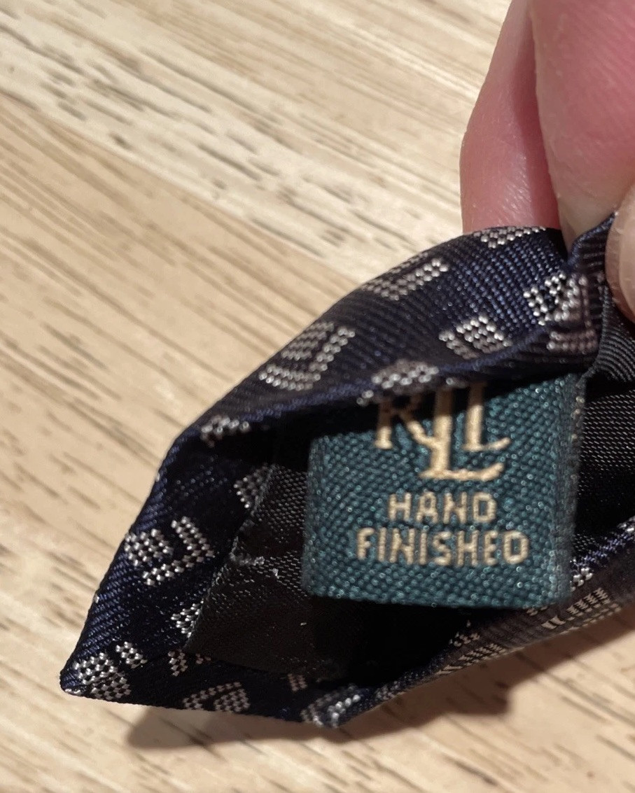 как выглядит Lauren Ralph Lauren Navy Blue Geometric Design Neck Tie 100 Silk Handmade USA фото