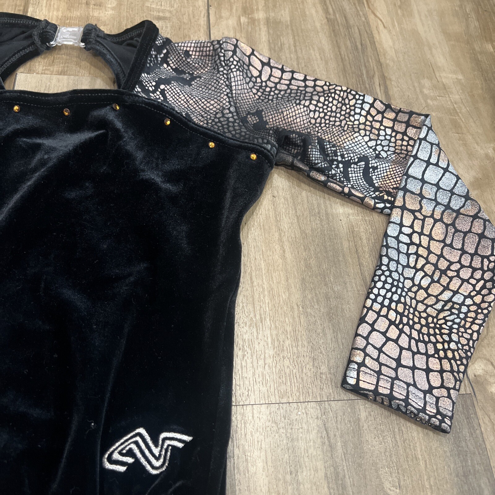 Alfa Factor Long Sleeve Leotard Size CLA Black W/ Sparkly Snake Print Velour