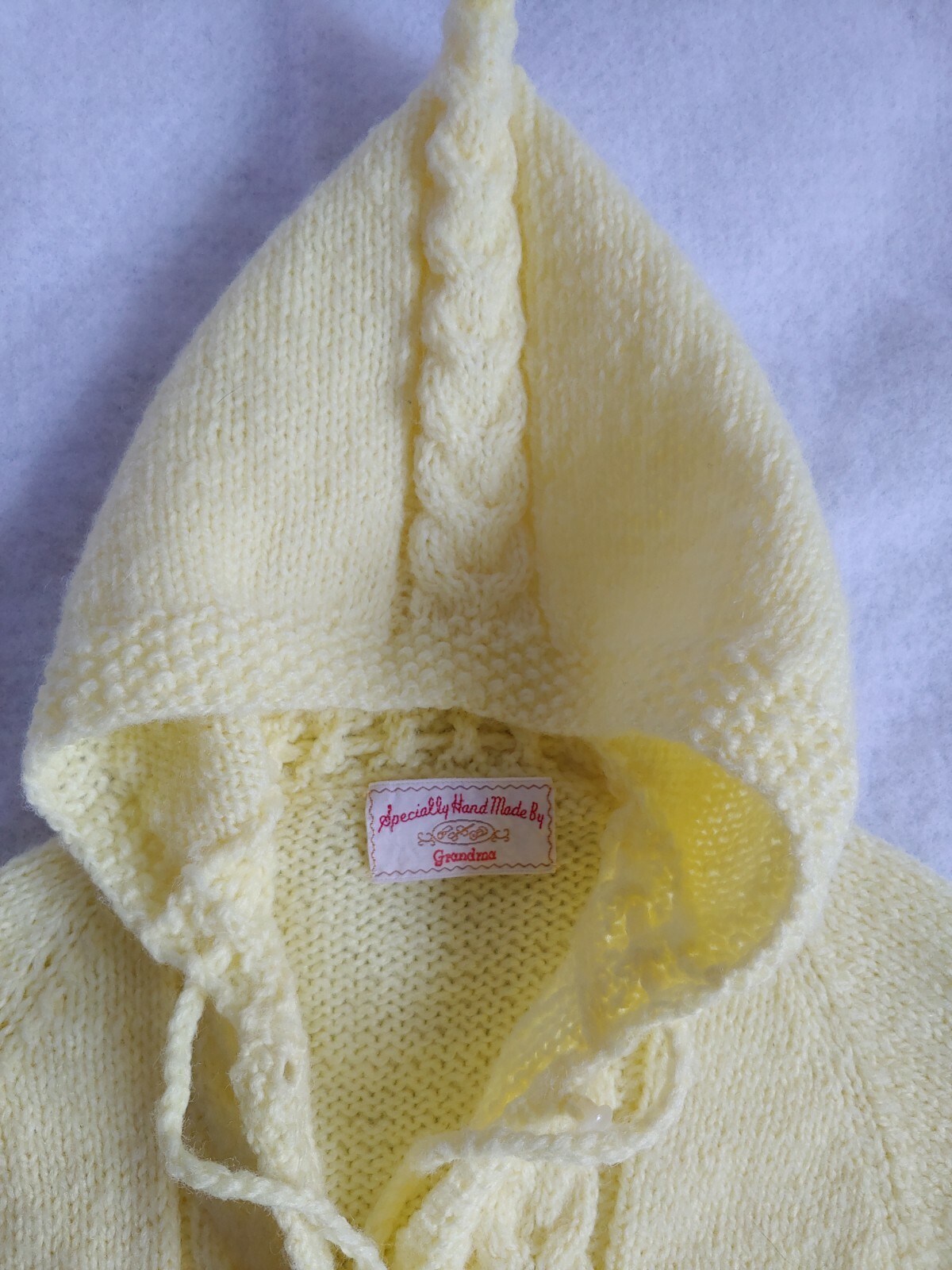 как выглядит Vintage New Hooded Yellow Handknit Baby Bunting фото