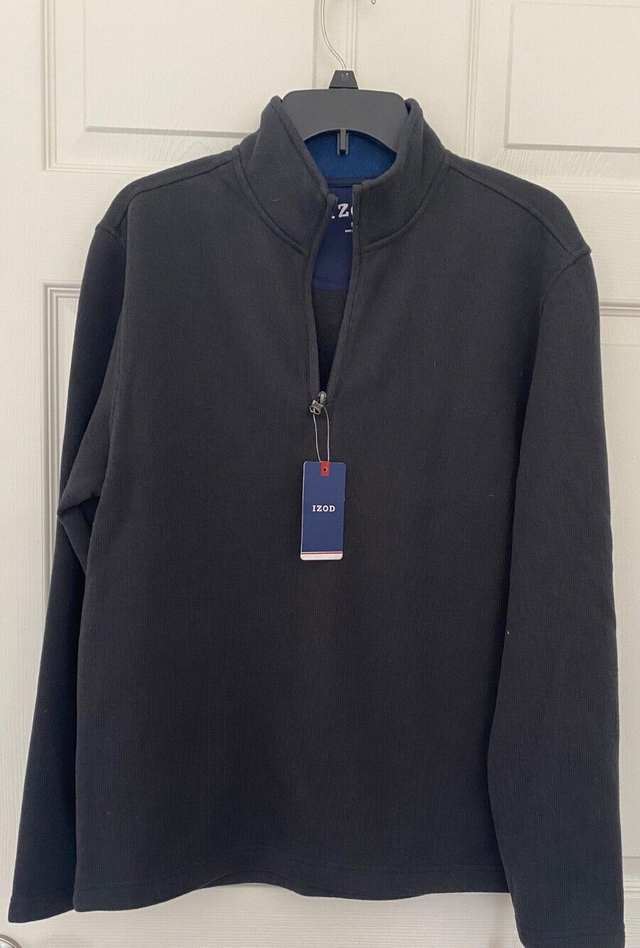 NEW 70 Izod 1/4 Zip Pullover Sweater Mens Medium Back Heather Fleece Inside