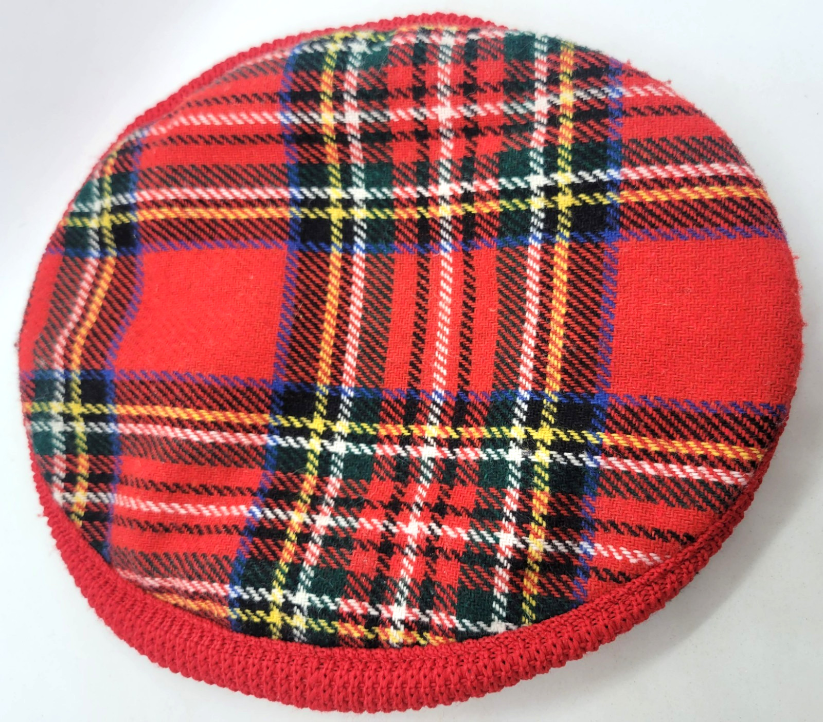 Scottish Clanwear Cap Hat Snap Brim Stretch Collar RED Tartan Scotland - VINTAGE