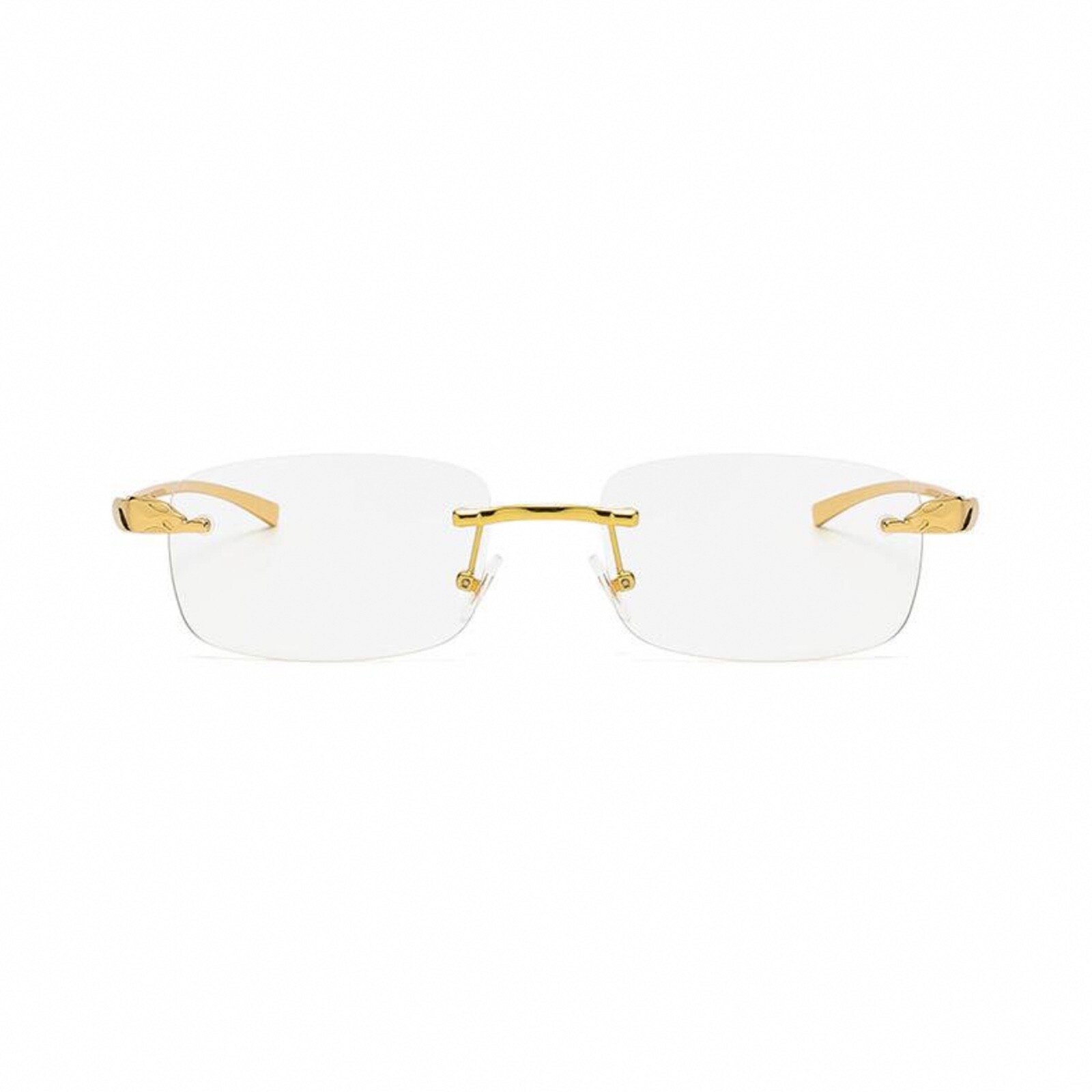 Gold Frame Leopard Rimless Mens Vintage Clear Lens Hip Hop Frameless Glasses