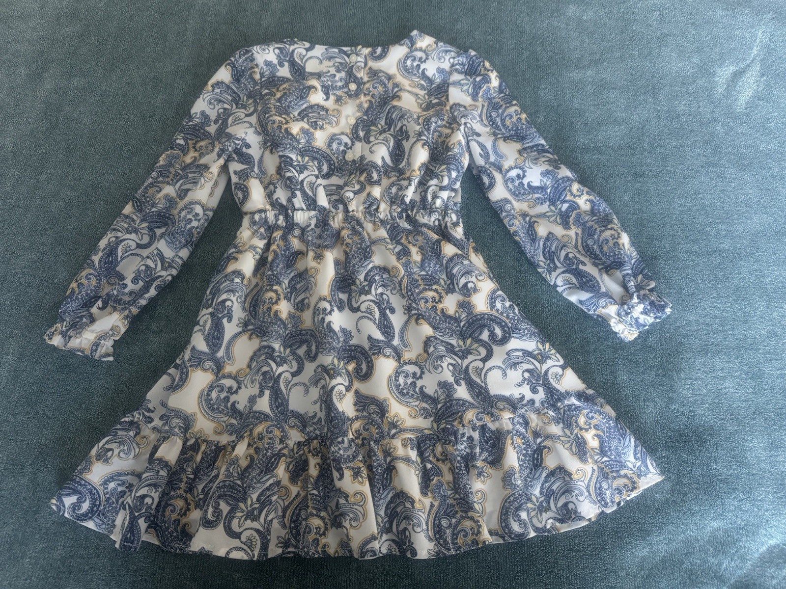 как выглядит Janie and Jack Long Sleeve Paisley Ruffle Airy Dress Size 5 Blue Yellow Easter фото
