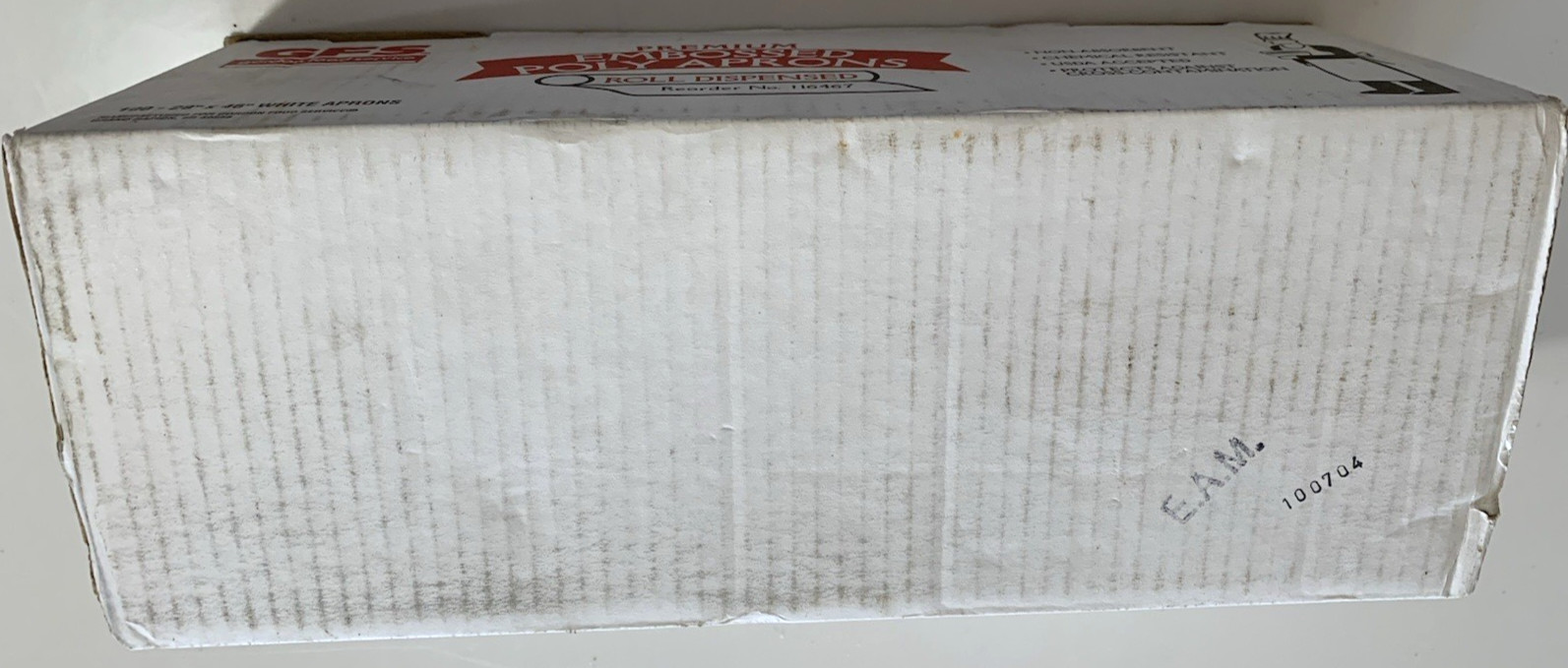 BOX OF GFS PREMIUM EMBOSSED POLY APRONS 100 28X46 WHITE APRONS. for 18.97