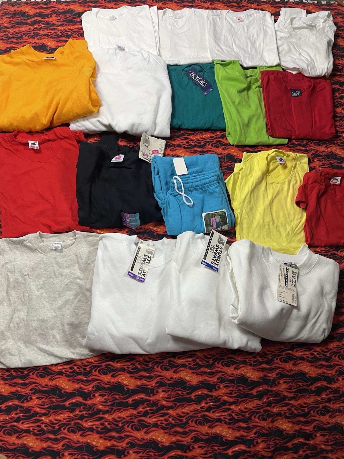 Lot Of 18 Vintage NWT 80 90 s Blank T Shirts Sweater S-L Multi Color Hanes/Etc