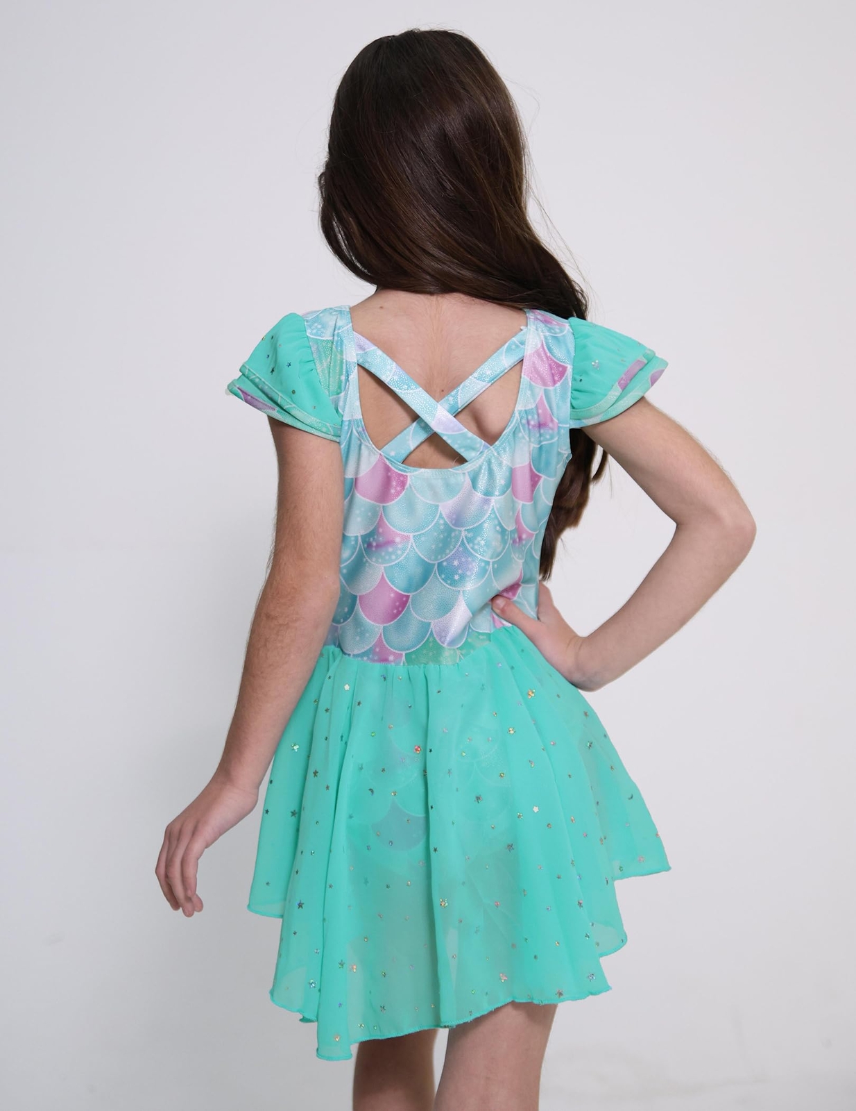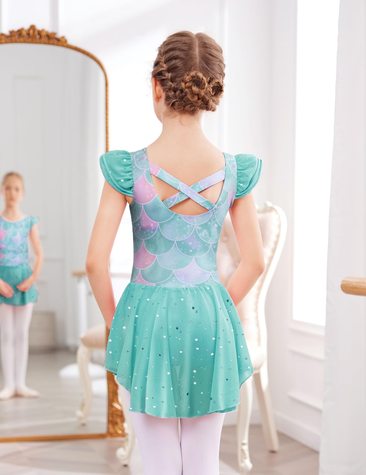 Girls Ruffle Sleeve Ballet Leotard with Skirt Criss-Cross Back Dance Dresses ...