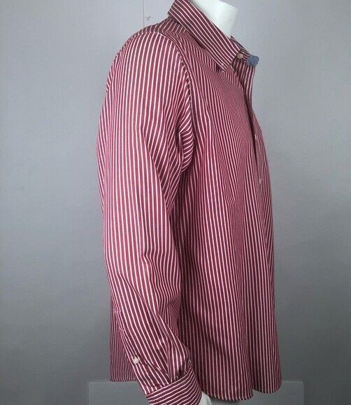 как выглядит Chaps Easy Care Mens Size LARGE RED Stripe Button Shirt classic business casual фото