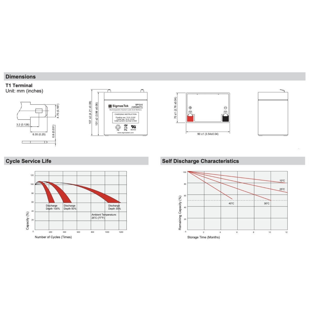 Long Way LW-6FM4.5 12V 5Ah F1 SLA AGM Rechargeable SigmasTek Battery Replacement