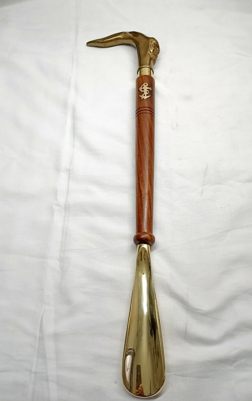 Shoe Horn Vintage Handmade Brass with Solid Wooden and Human Face Handle
