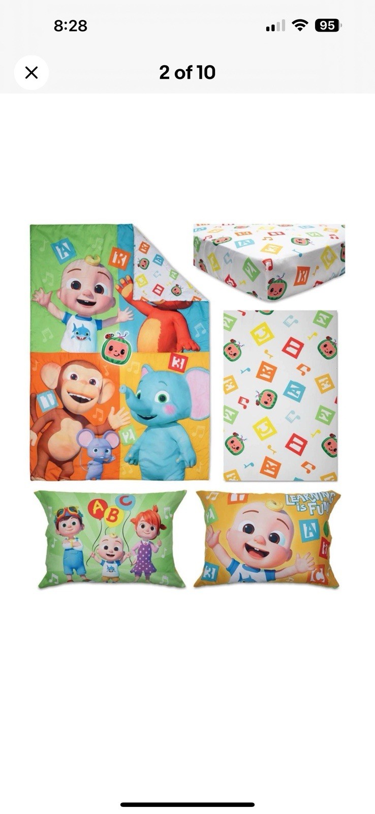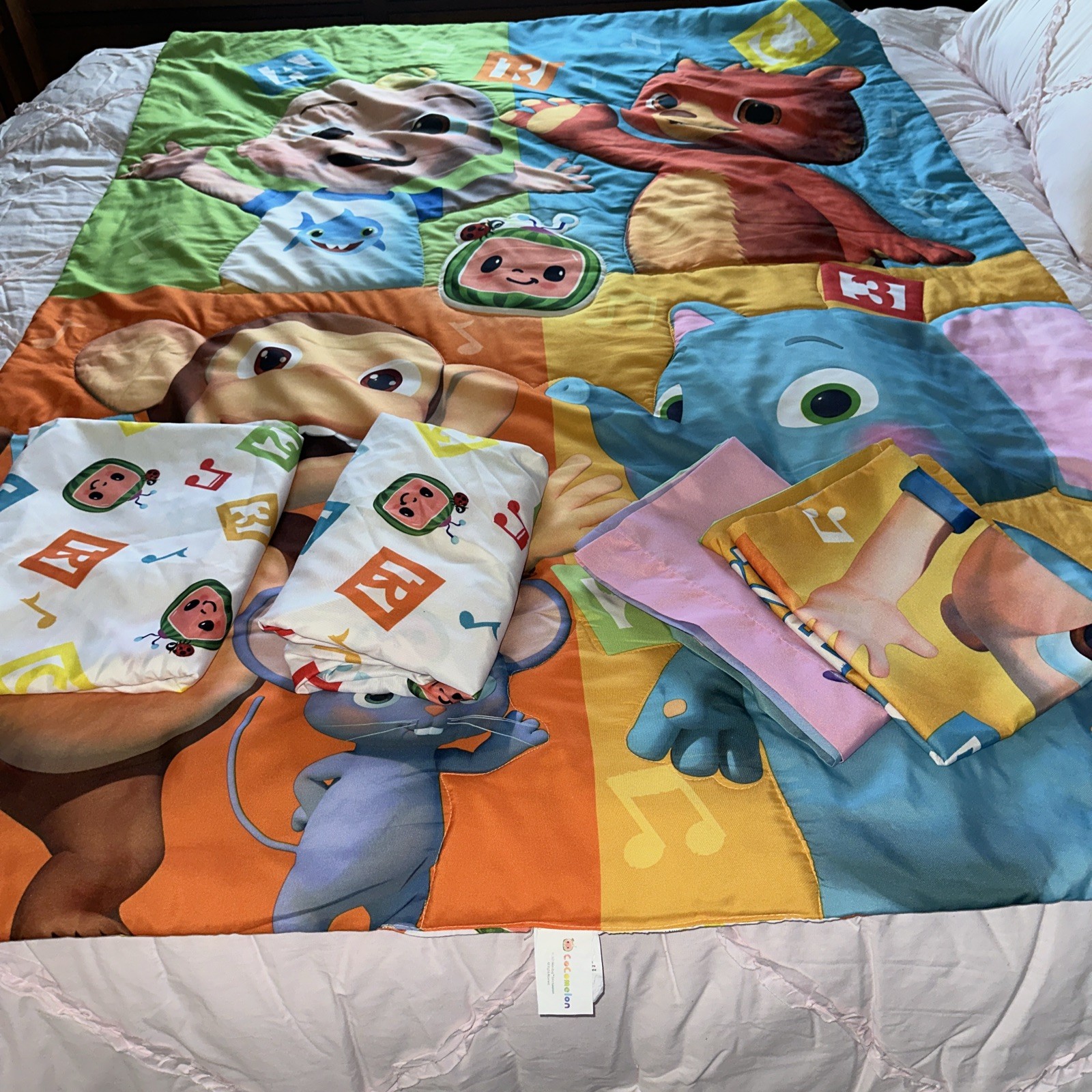 Funhouse Cocomelon 4 piece Toddler Bed Set Reversible Super Cute