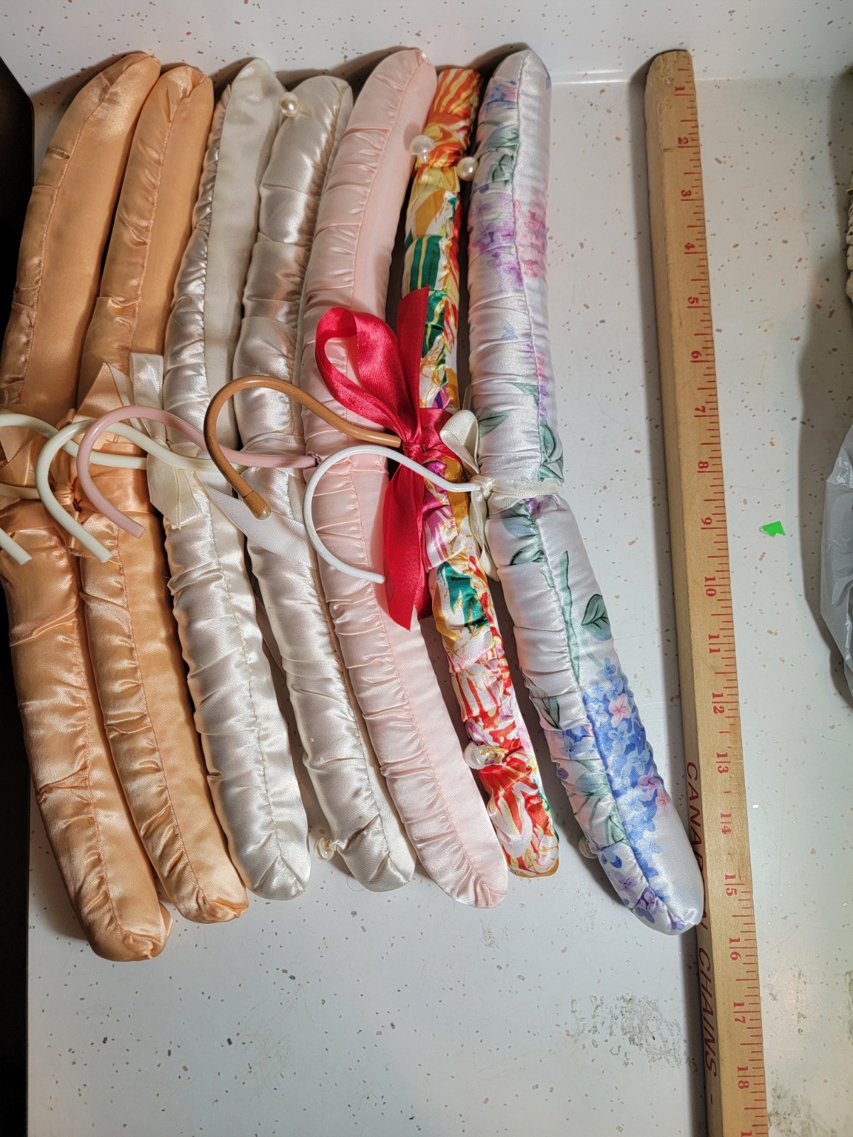 как выглядит VINTAGE SATIN OR SILK CUSHIONED COAT HANGERS VARIOUS COLORS AND STYLES фото