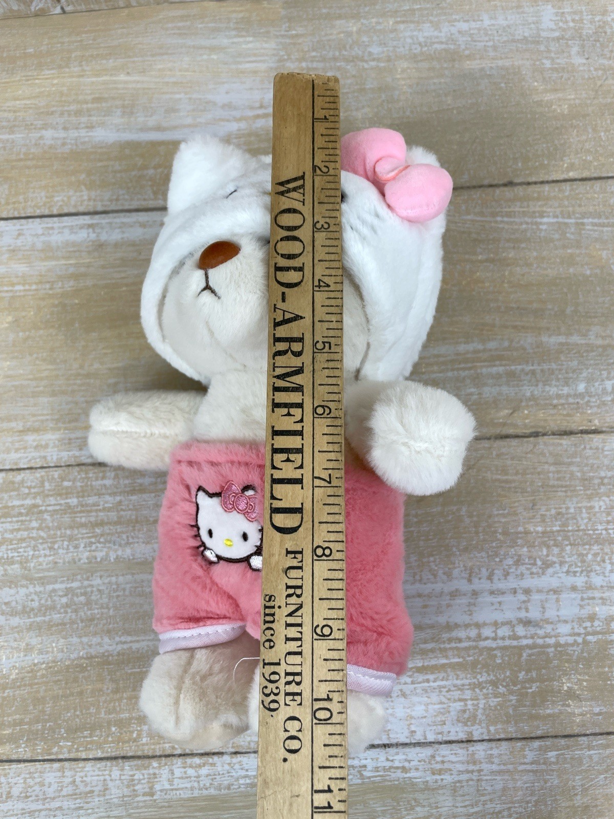 • Cosplay Teddy Bear White Plush Stuffed Toy in Hello Kitty Costume w/ Pink Bow