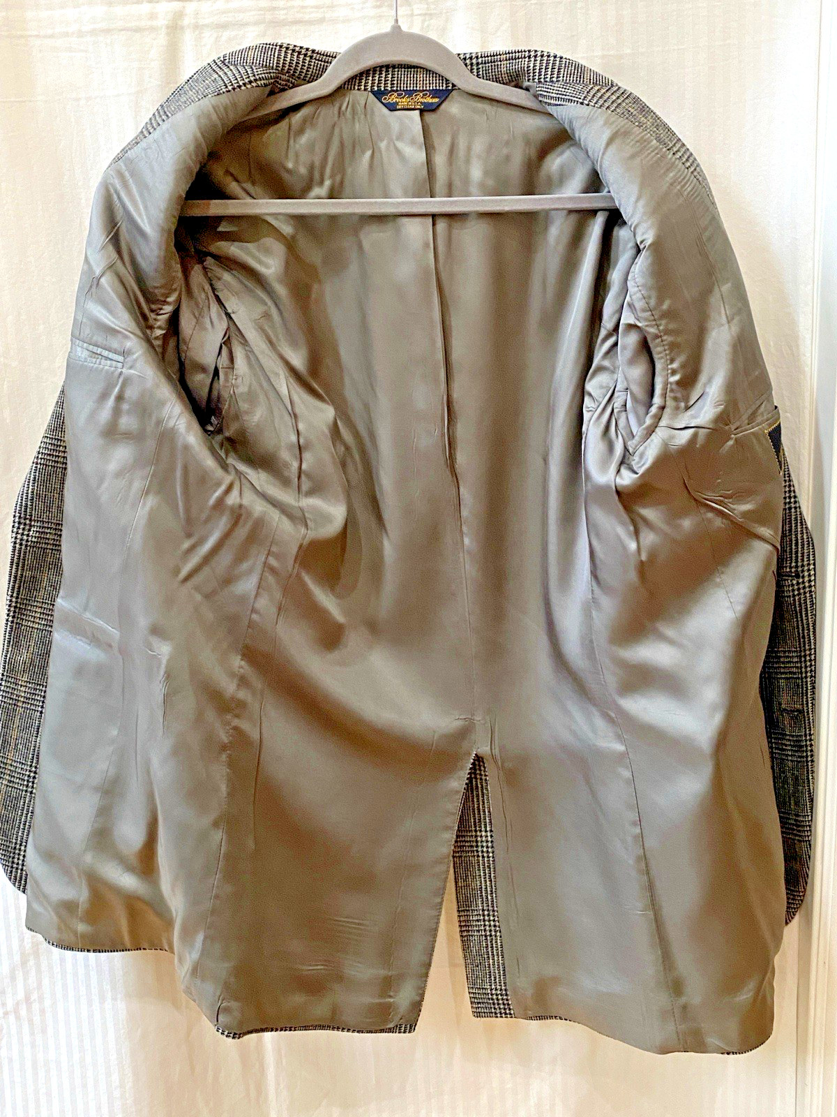 как выглядит Vintage Brooks Brothers Blazer Mens 44 100 Camel Hair Gray Plaid Sport Coat фото