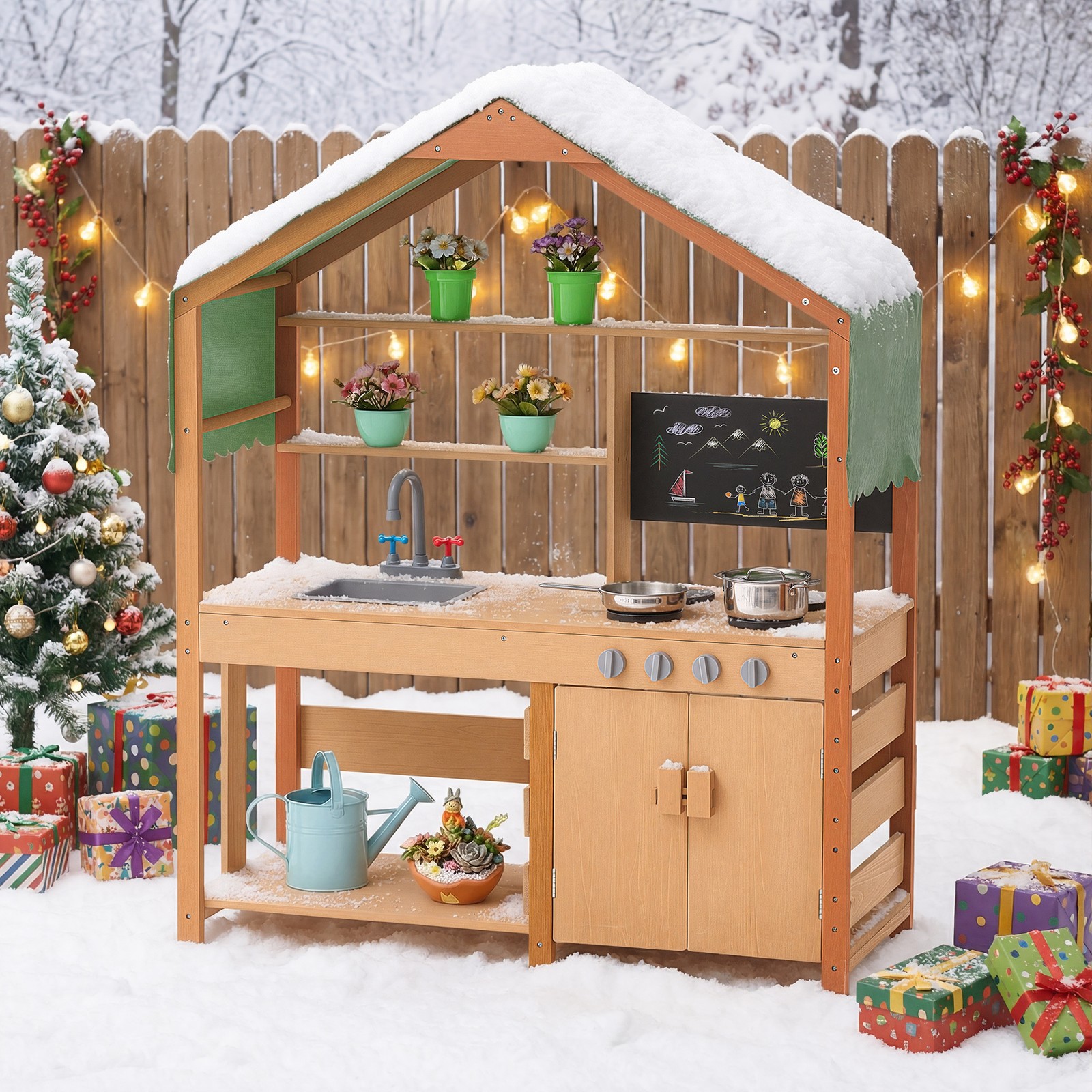 VEVOR Wooden Mud Kitchen Outdoor Toy Play Kitchen Set for Kids Pretend Playset