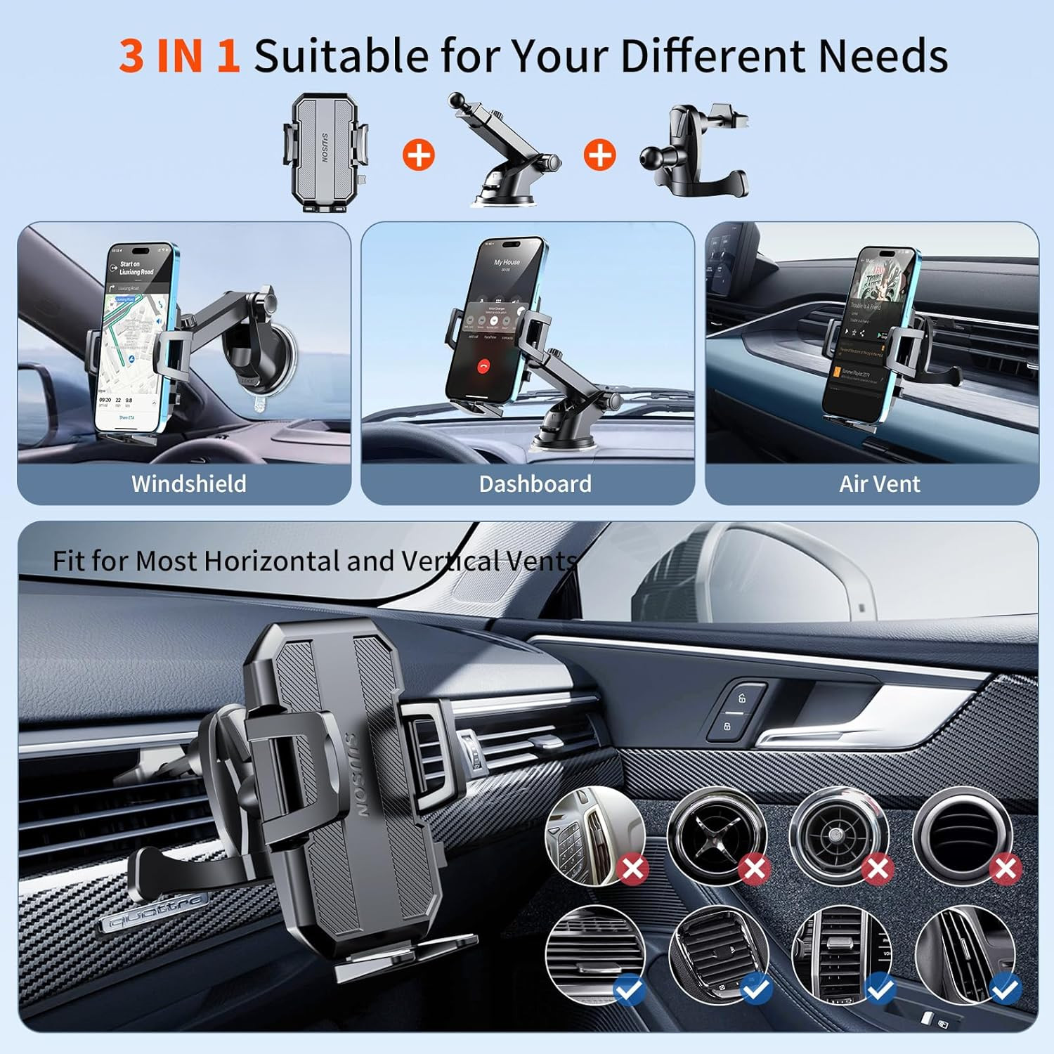 Mounting Type: Dashboard 、Air Vent、Windshiled