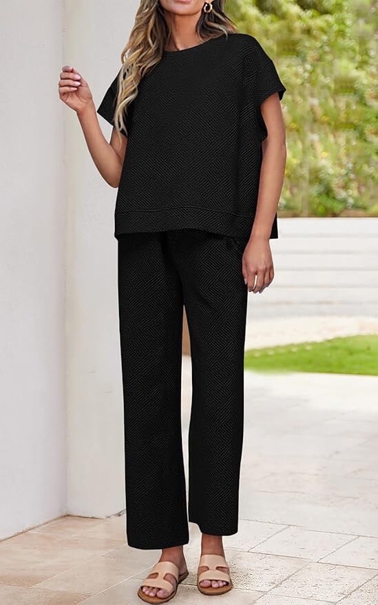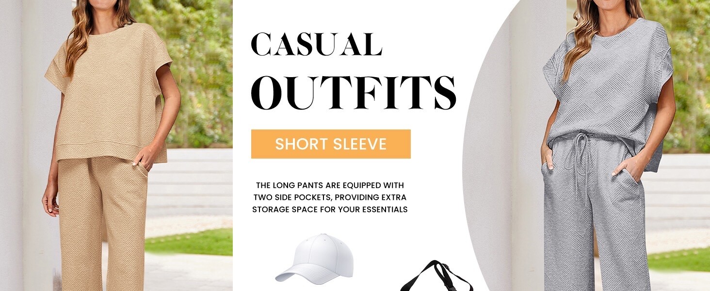 2 Piece Outfits For Women Casual Tracksuit Short Sleeve Tops And Wide Leg Long