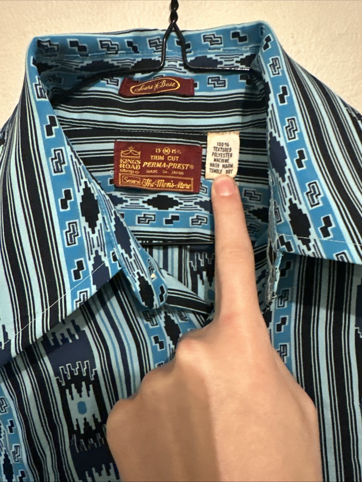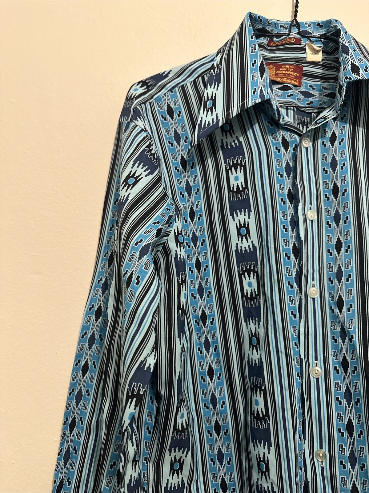 Vintage Sears Kings Road Perma Prest Native American Western Blue Button Shirt M