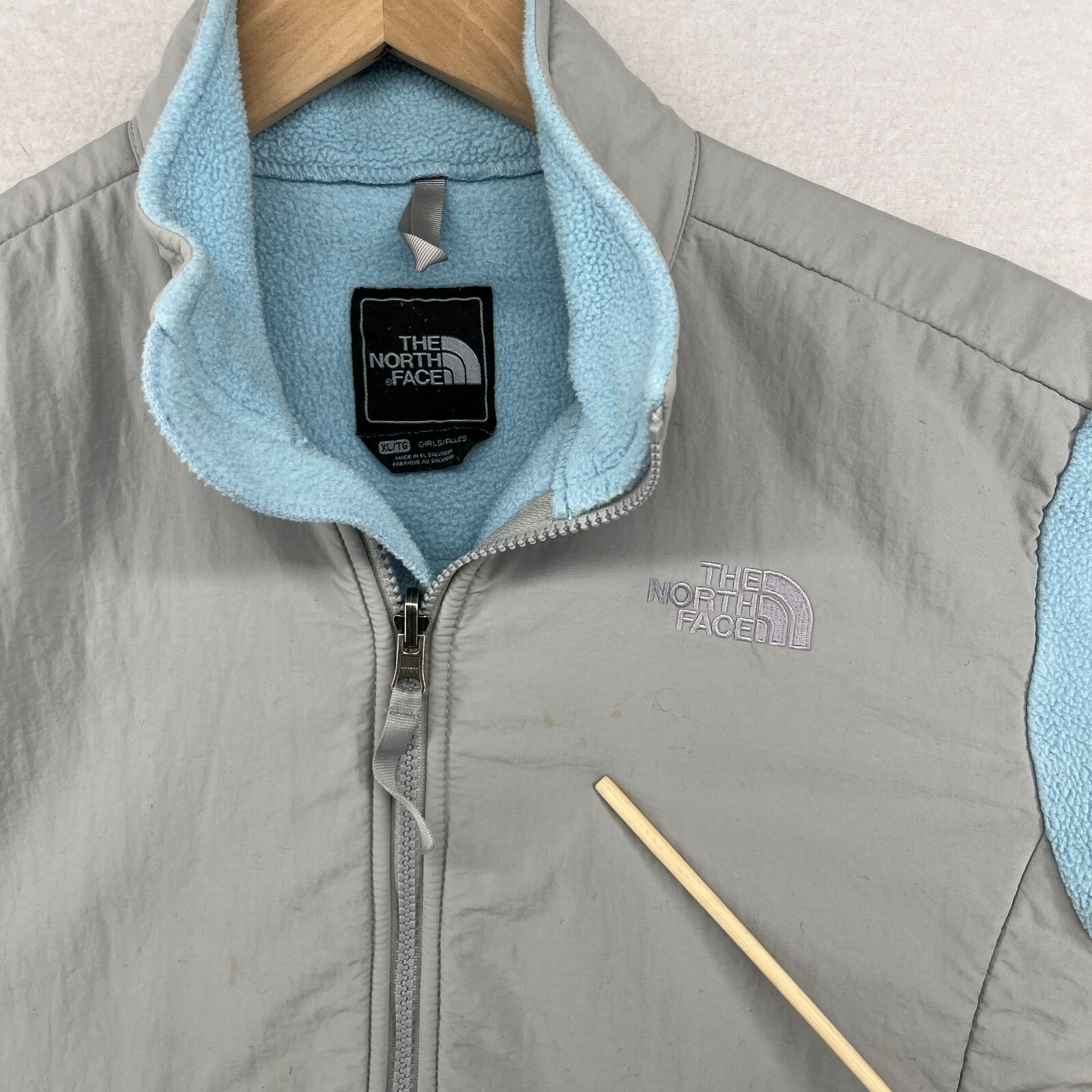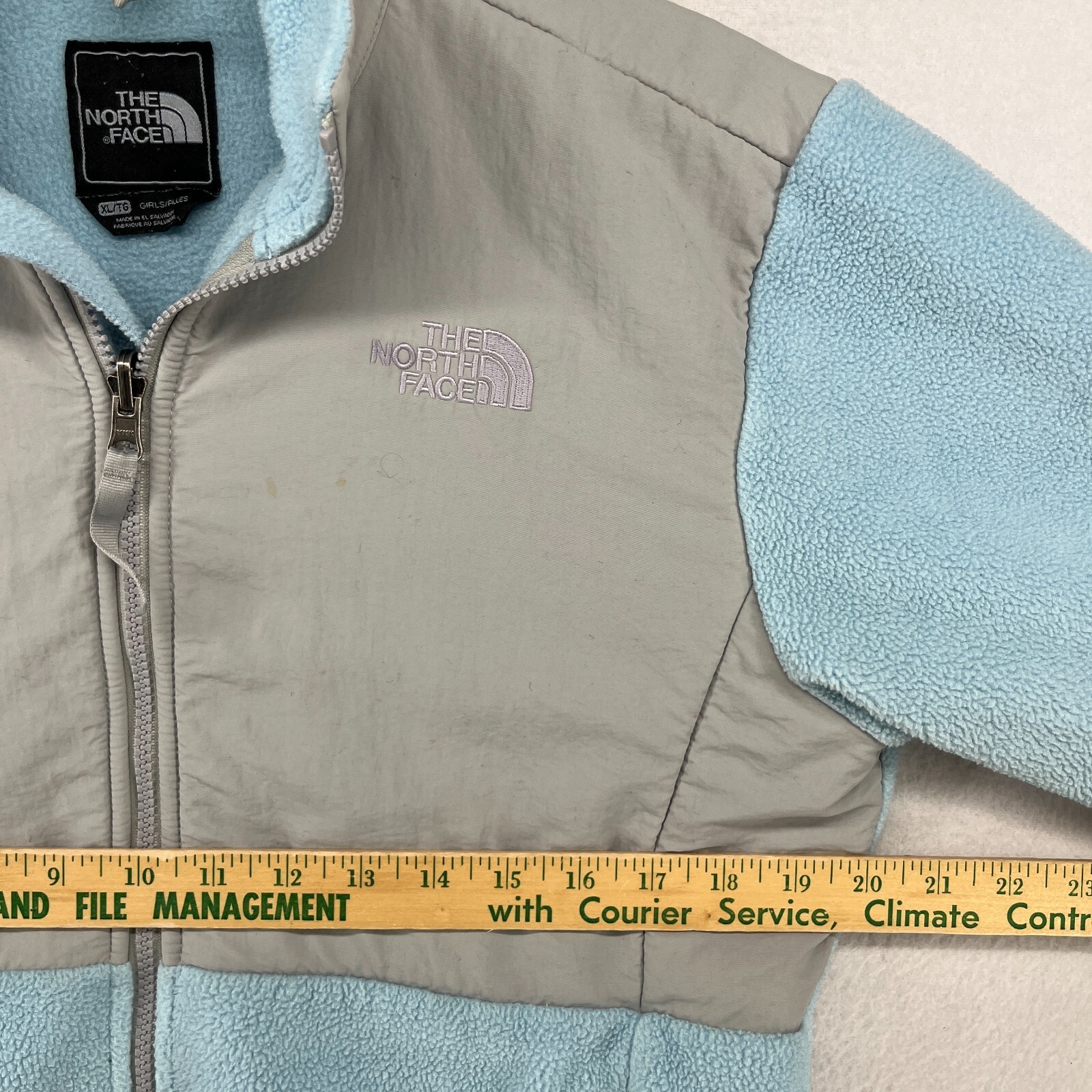 как выглядит THE NORTH FACE Jacket Girls XL Denali Polartec Fleece Colorblock Full Zip Blue фото