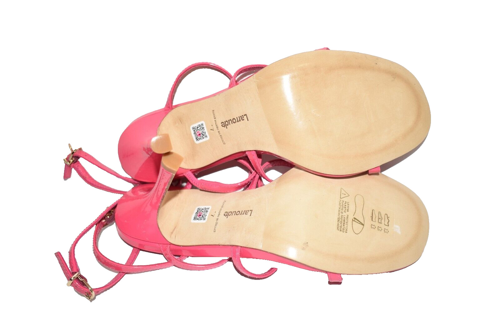 350 Larroude Serena Patent-Leather Strappy GLADIATOR HEEL Sandals PINK 7 DC3