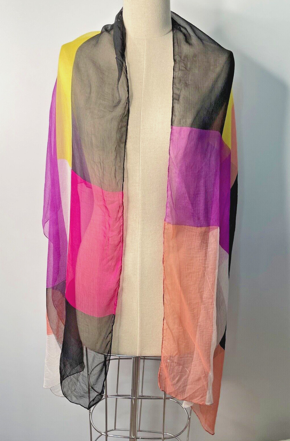Vintage- Sheer Multi Color Block Long Oblong Scarf/Wrap G-39