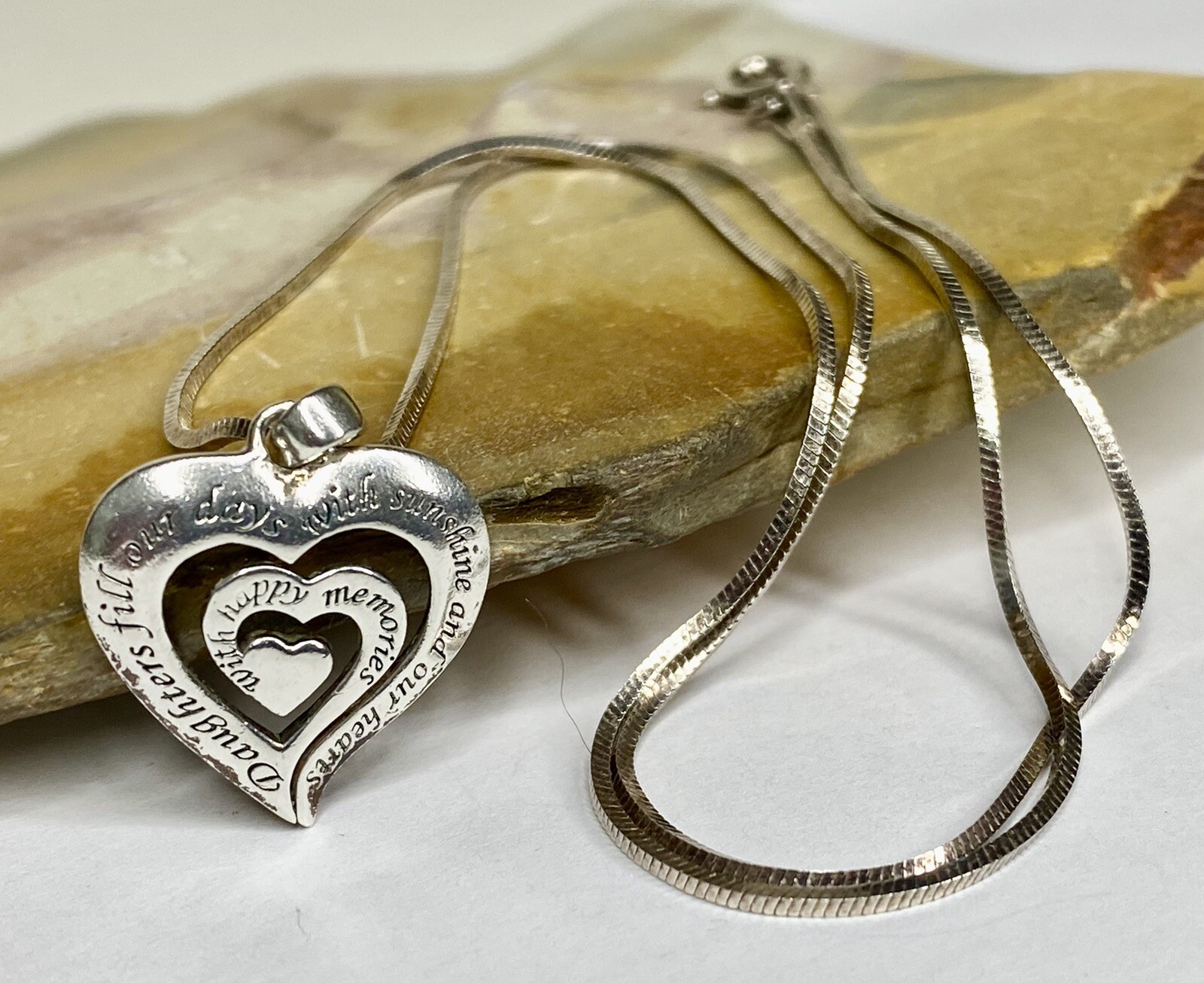 Vintage Sterling Silver 925 TO DAUGHTER MESSAGE Heart Pendant 16 Necklace