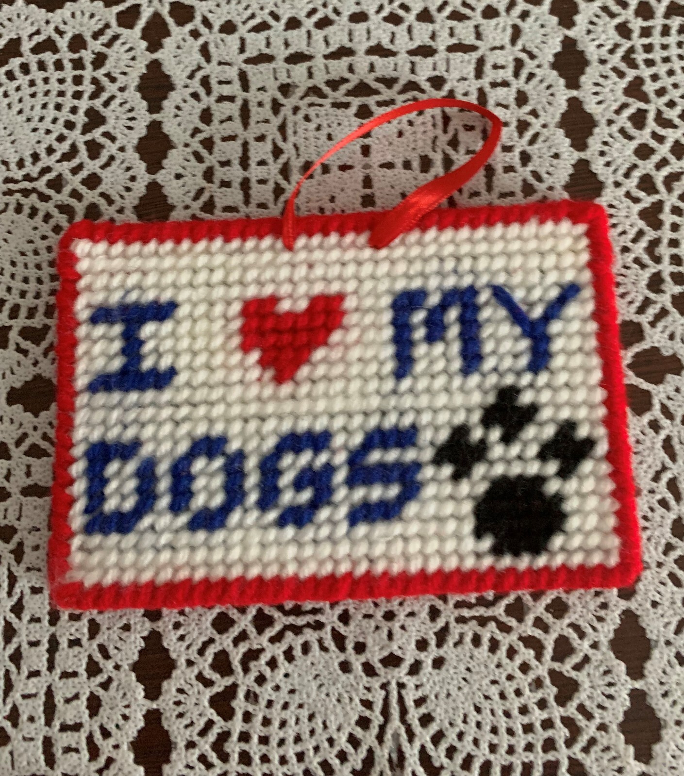Handmade Needlepoint Sign I Love My DOG DOGS Canine Lover Gift Item Brand New