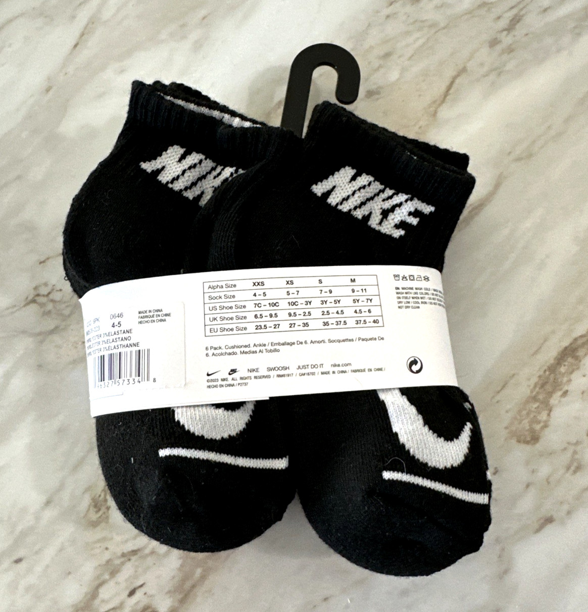 Nike Little Boy Cushioned Ankle Socks 6 Pack Size XXS Sock 4-5 Shoe 7C-10C