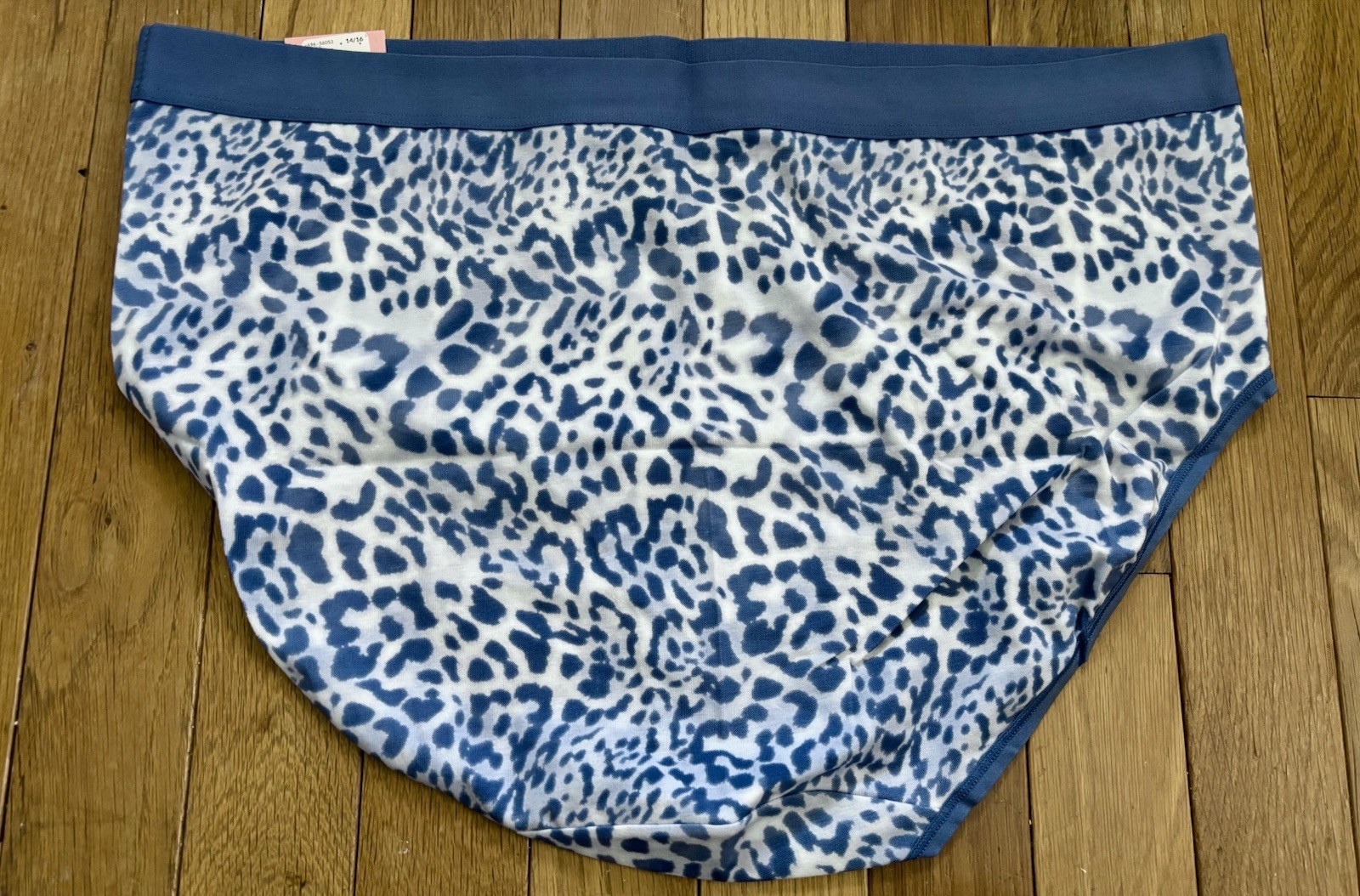 Plus 14/16 Lane Bryant Cacique High Leg Brief Cotton Panty Blue White Leopard