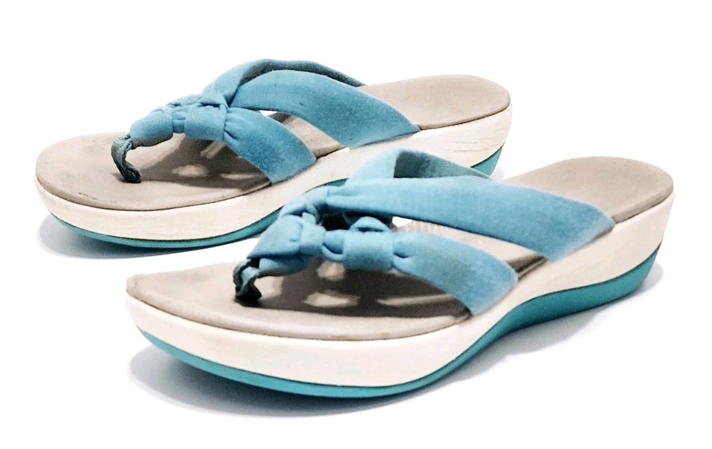 как выглядит Clarks Womens Arla Jane Aqua Solid Textile Flip Flop Comfort Sandals Size 10 фото