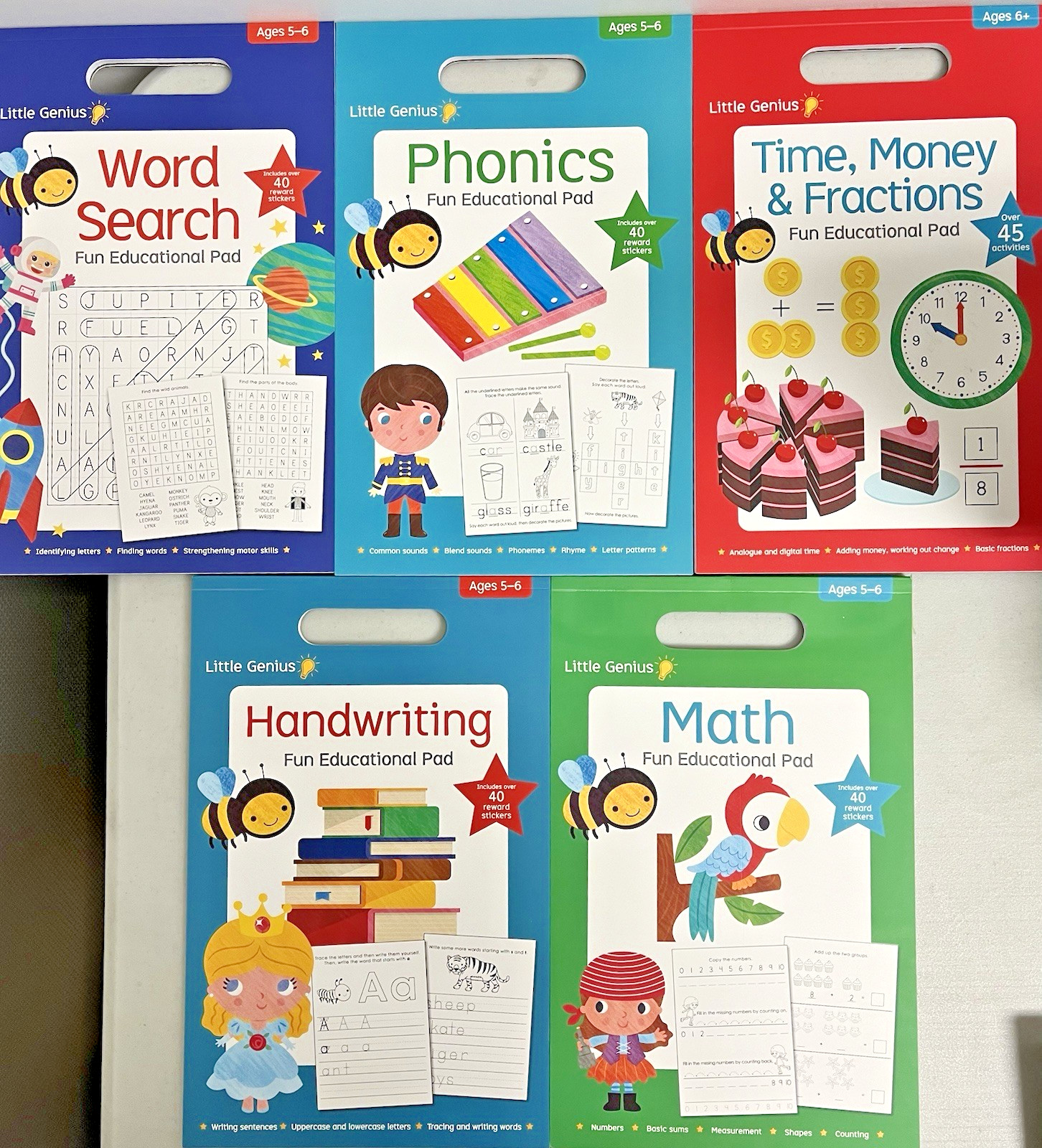 Little Genius Learning Fun 5 Activity Pads Ages 5-6 NEW