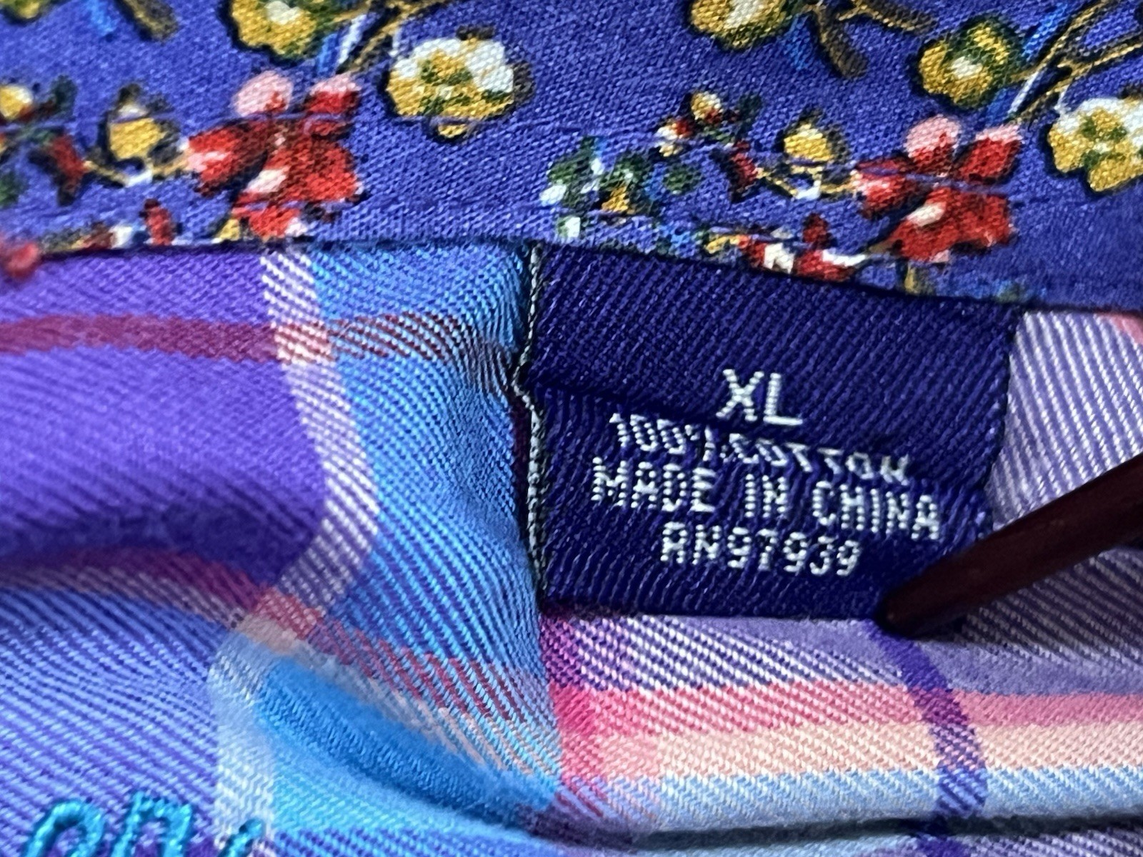 как выглядит Alan Flusser Long Sleeve Cotton Shirt Plaid w/Contrasting Floral Cuffs Mens XL фото
