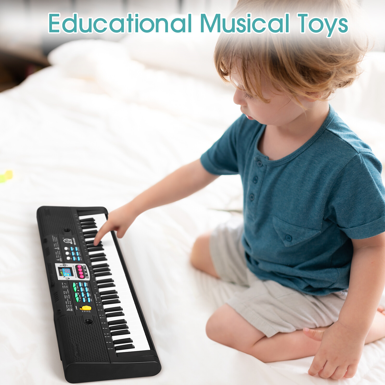 как выглядит 61 Keys Electronic Piano for Beginners, Portable with Microphone for Boys Girls фото