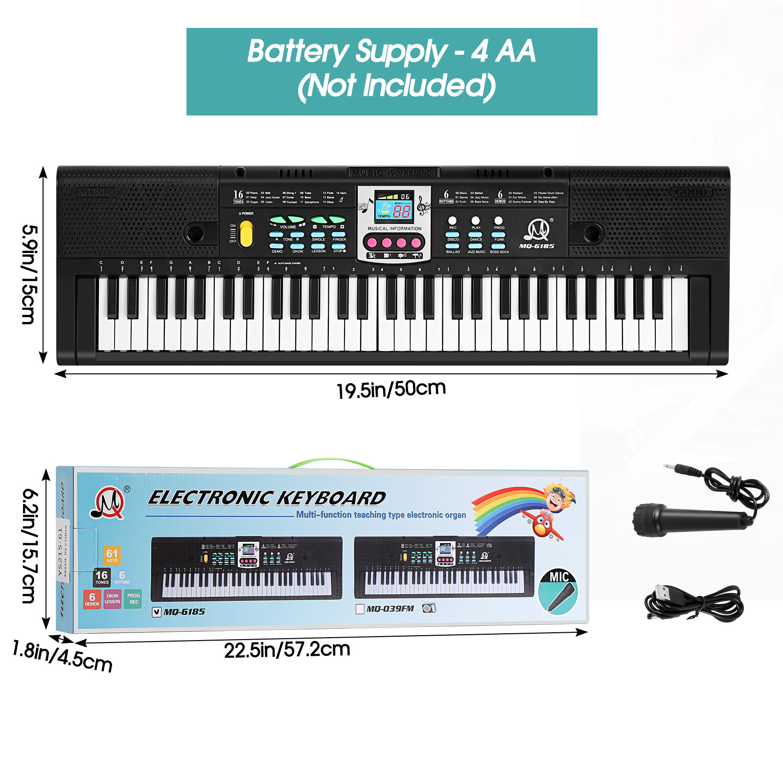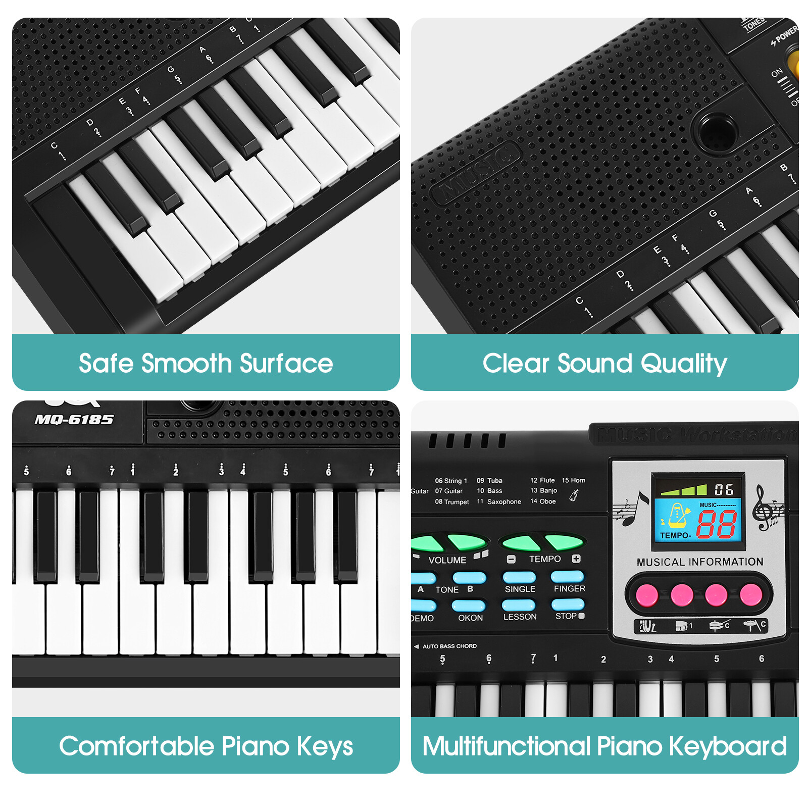 61 Keys Electronic Piano for Beginners, Portable with Microphone for Boys Girls