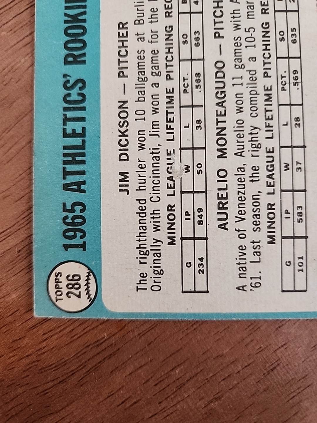 • 1965 Topps - KC Athletics Rookie Stars Aurelio Monteagudo, Jim Dickson 286 RC