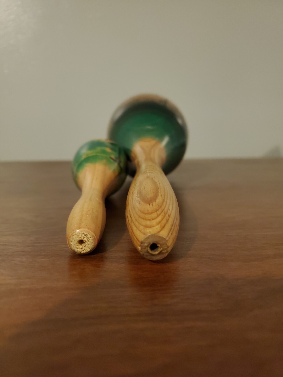 как выглядит 2 Wooden Maracas Percussion Shaker Instrument Red Green Palm Tree Tropical фото