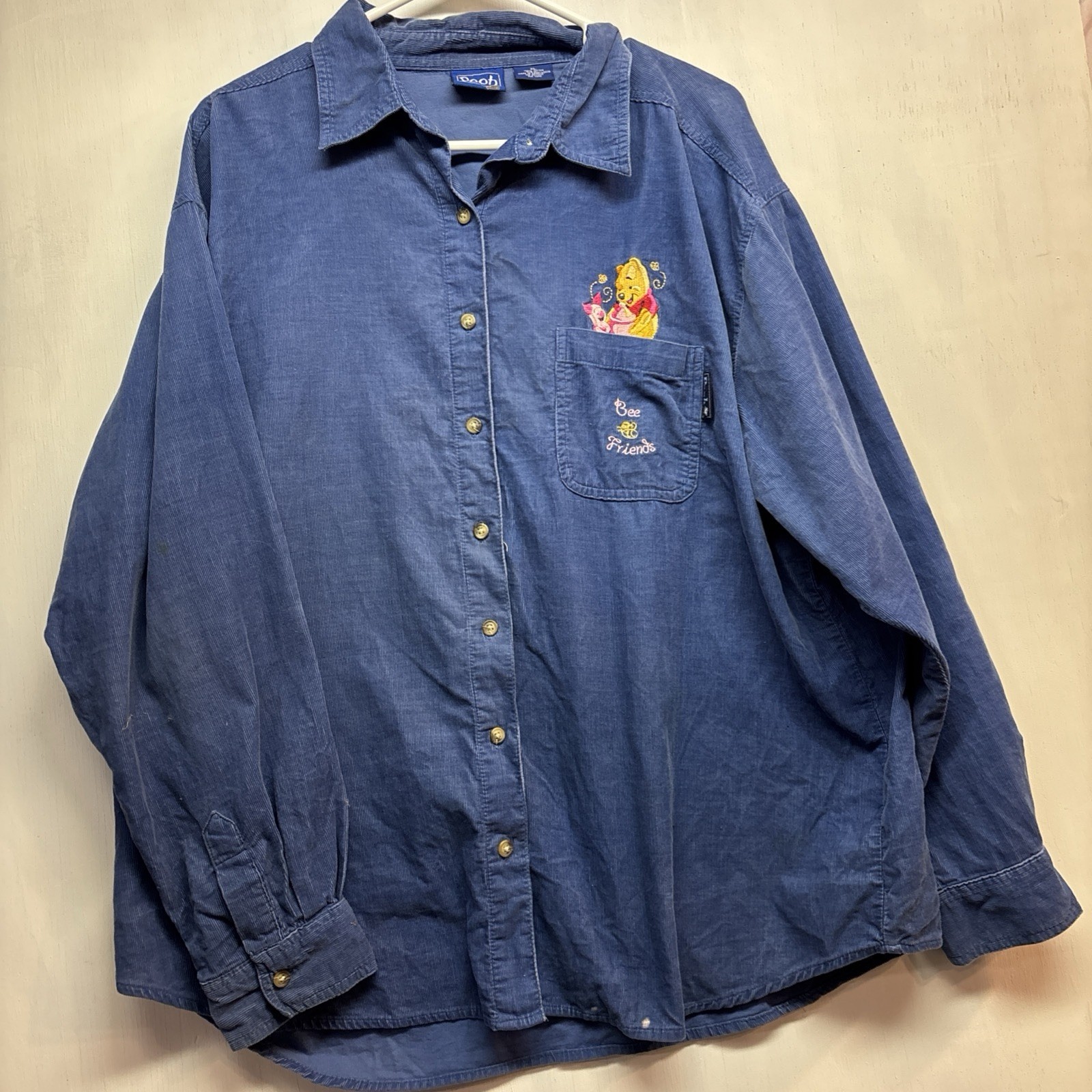 Vintage Disney Winnie the Pooh Dark Blue Corduroy Button Down Shirt Size X Large