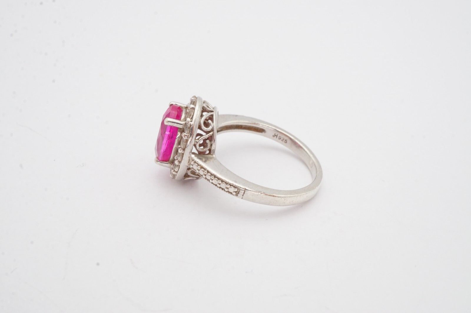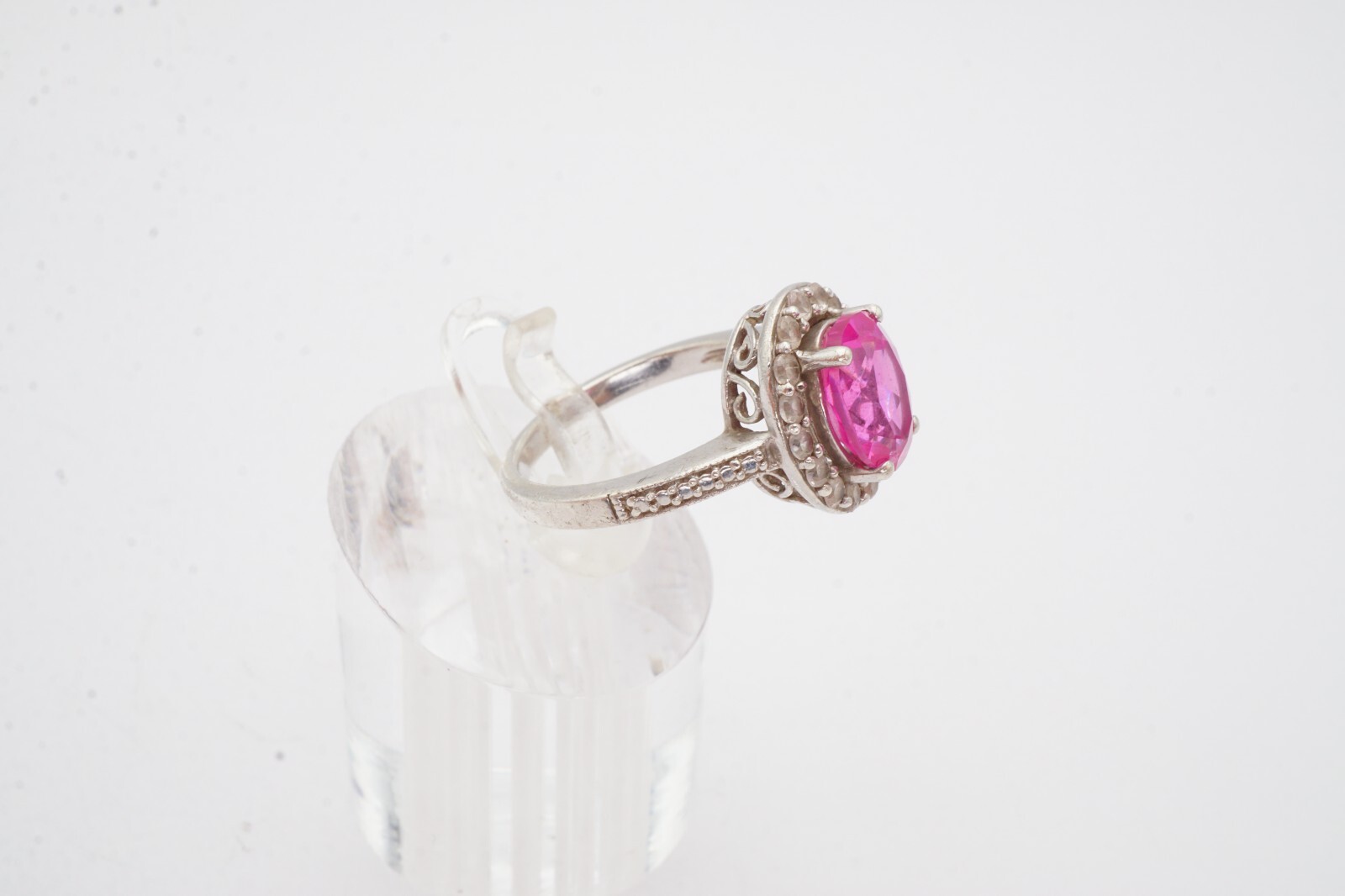 как выглядит Sterling Silver 925 Lab-Created Pink Sapphire Ring Size 6 T3 фото