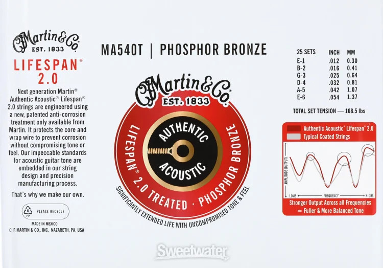 Martin MA540T Authentic Acoustic Lifespan 2.0 Treated 92/8 Phosphor Bronze