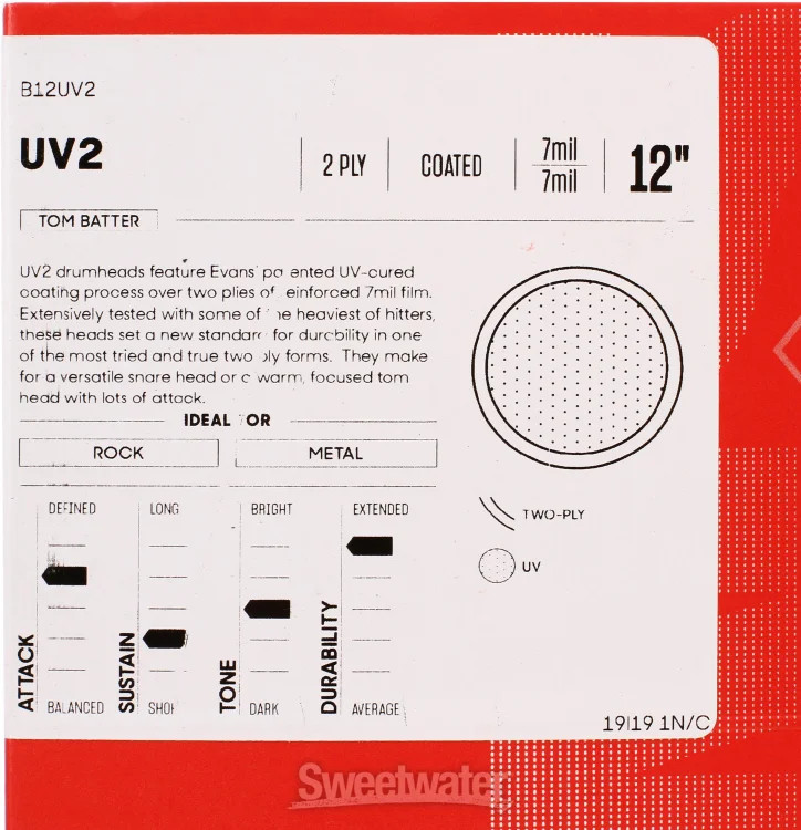 Evans UV2 Series Coated Drumhead - 12