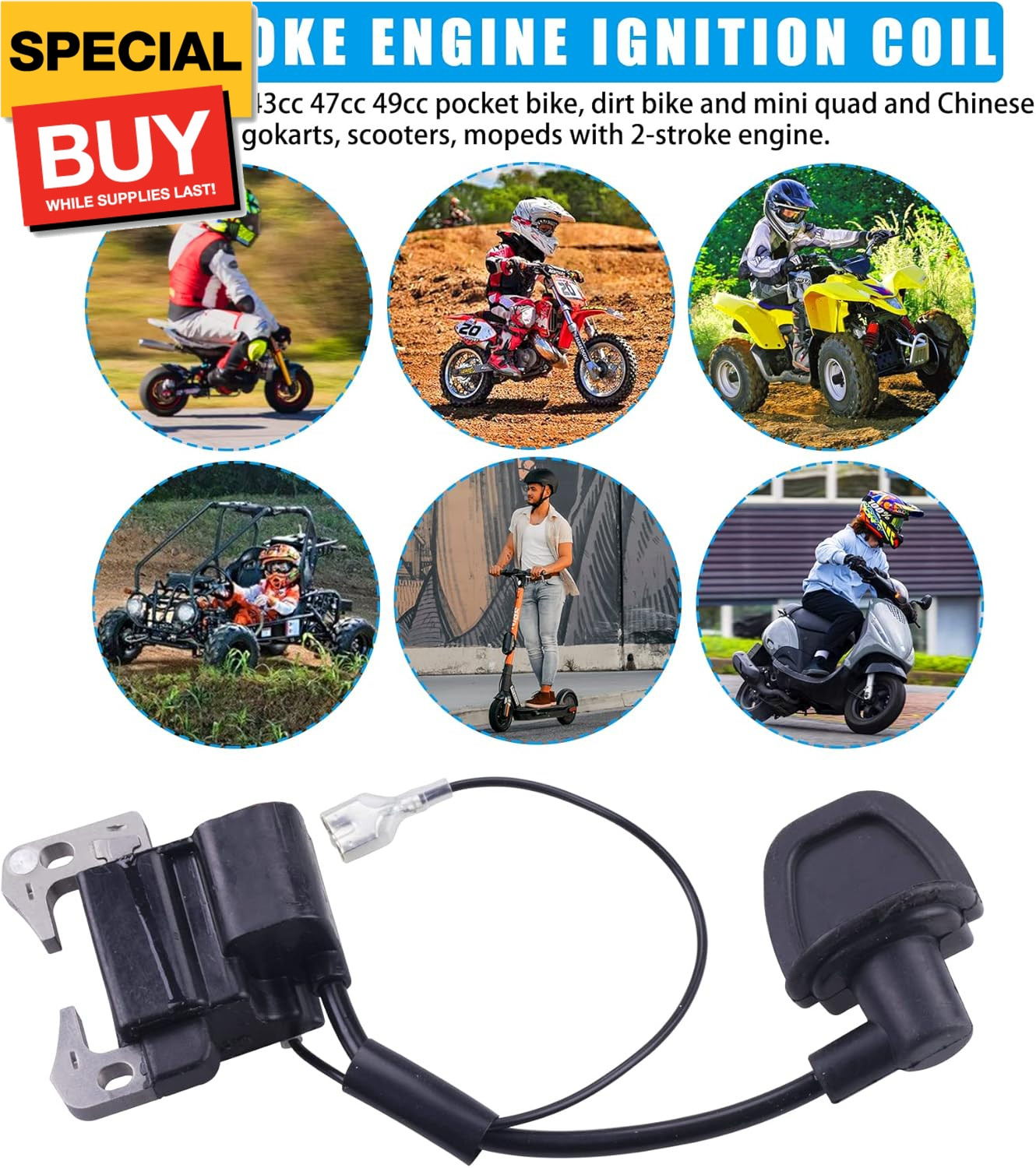 2-Stroke Engine Ignition Coil for 33cc 43cc 47cc 49cc 50cc Mini moto Dirt Pocket
