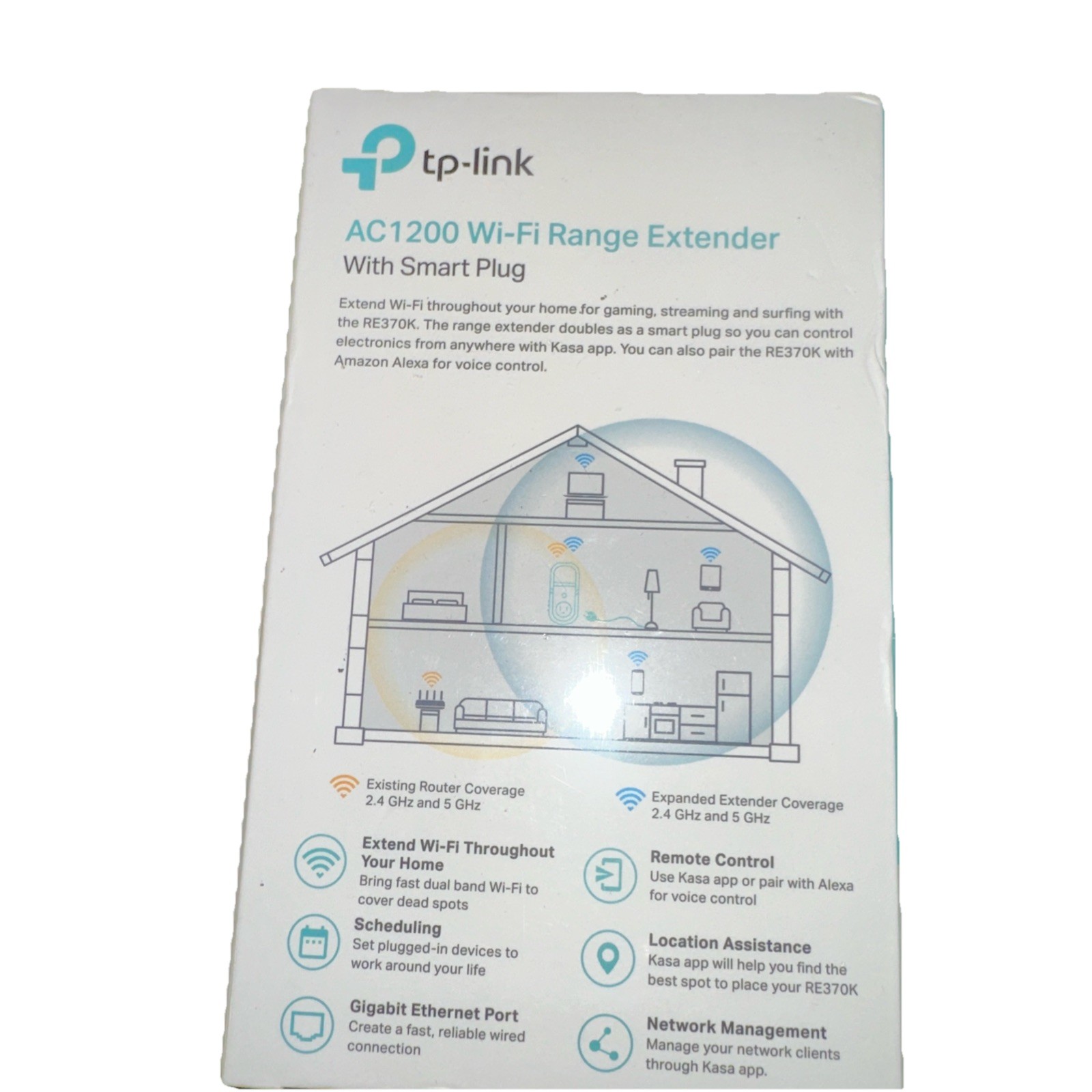 TP-LINK AC1200 Wifi Range Extender with Smart Plug - White RE370K