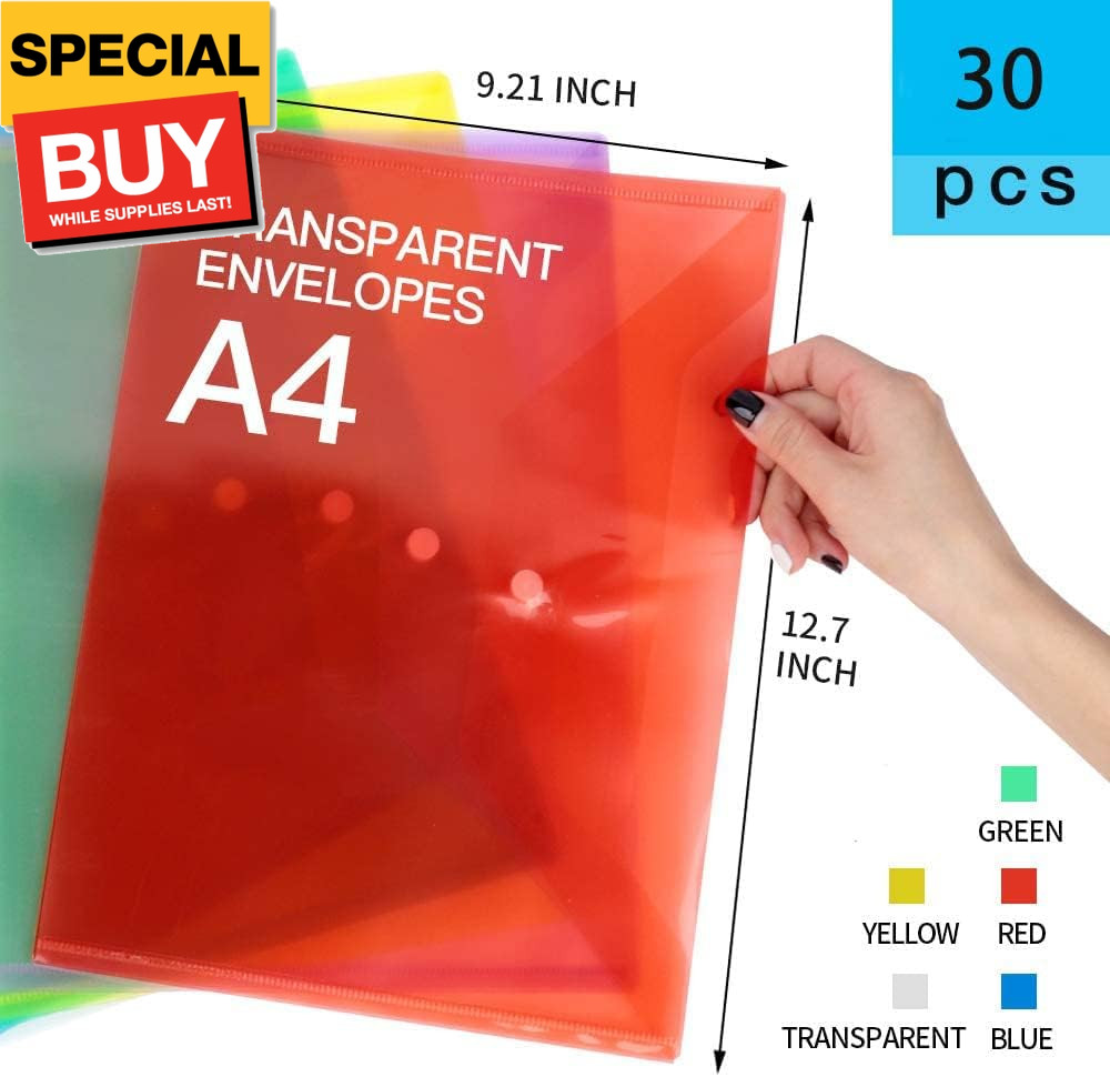 Plastic Envelopes, 30pcs A4 Size Poly Envelopes Document Folders with Snap Butto