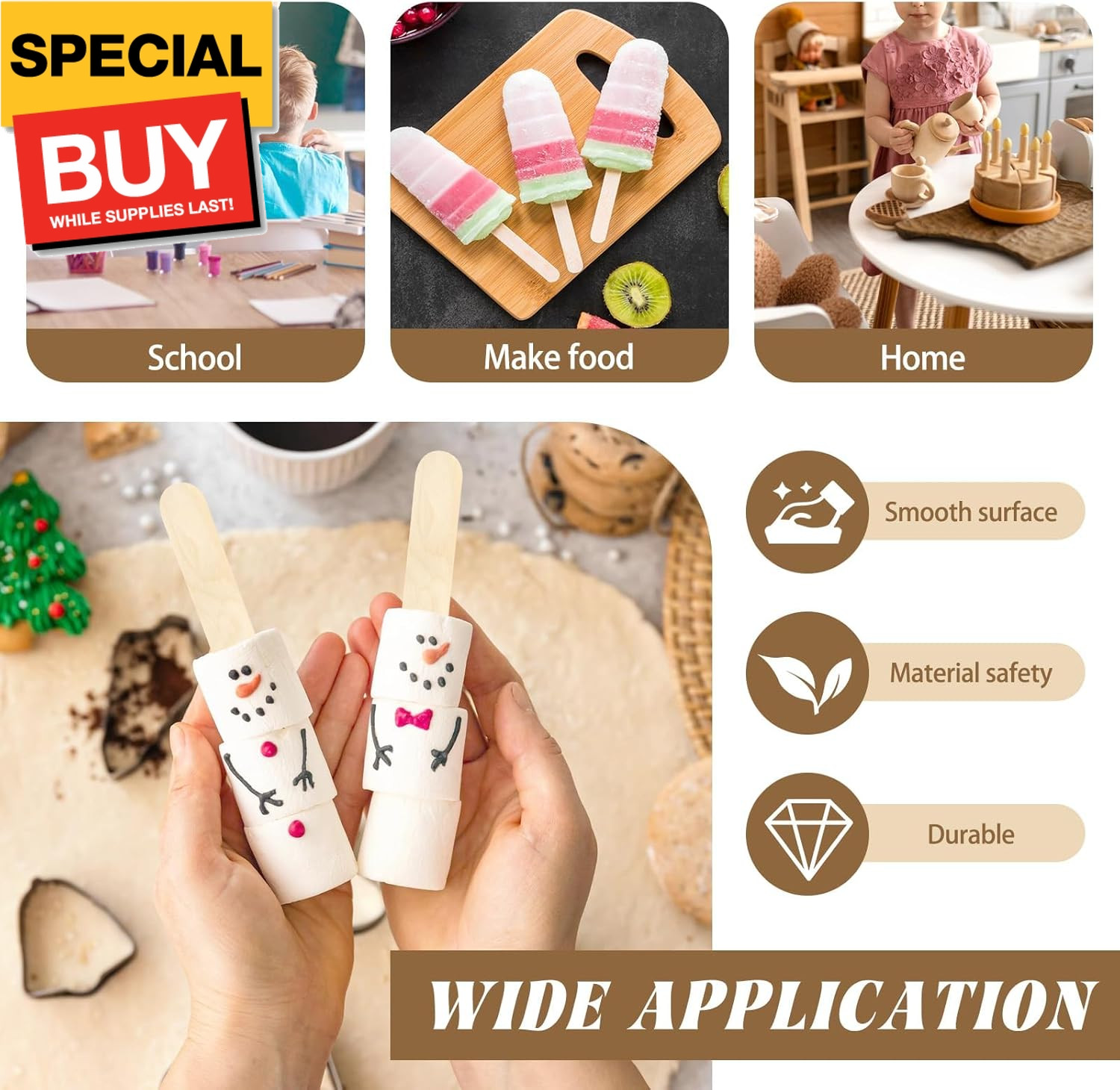 250 Pieces Jumbo Craft Sticks, 8 Inch Wooden Large Tongue Depressor Sticks, Jumb